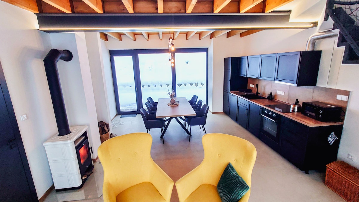 Escapada urbana, tranquila y 2000 m2 de privacidad en un oasis verde. Ovejas detrás de la valla y estanque a unos pasos. Una nueva cocina moderna y totalmente equipada, así como un patio gigante. Alojamiento con estilo en el corazón de las montañas Jeseníky: solo tú, la naturaleza y el bienestar. La buena ubicación y las comodidades de nuestro chalet te garantizan un alojamiento agradable y tranquilo y buenas instalaciones para tu estancia en las montañas Jeseníky. La sala común ofrece una zona de estar, TV (satélite), vídeo VHS (cuentos de hadas y películas disponibles), radio con CD y juegos de mesa y juguetes para niños. Gran accesibilidad a Praděd y sus alrededores.