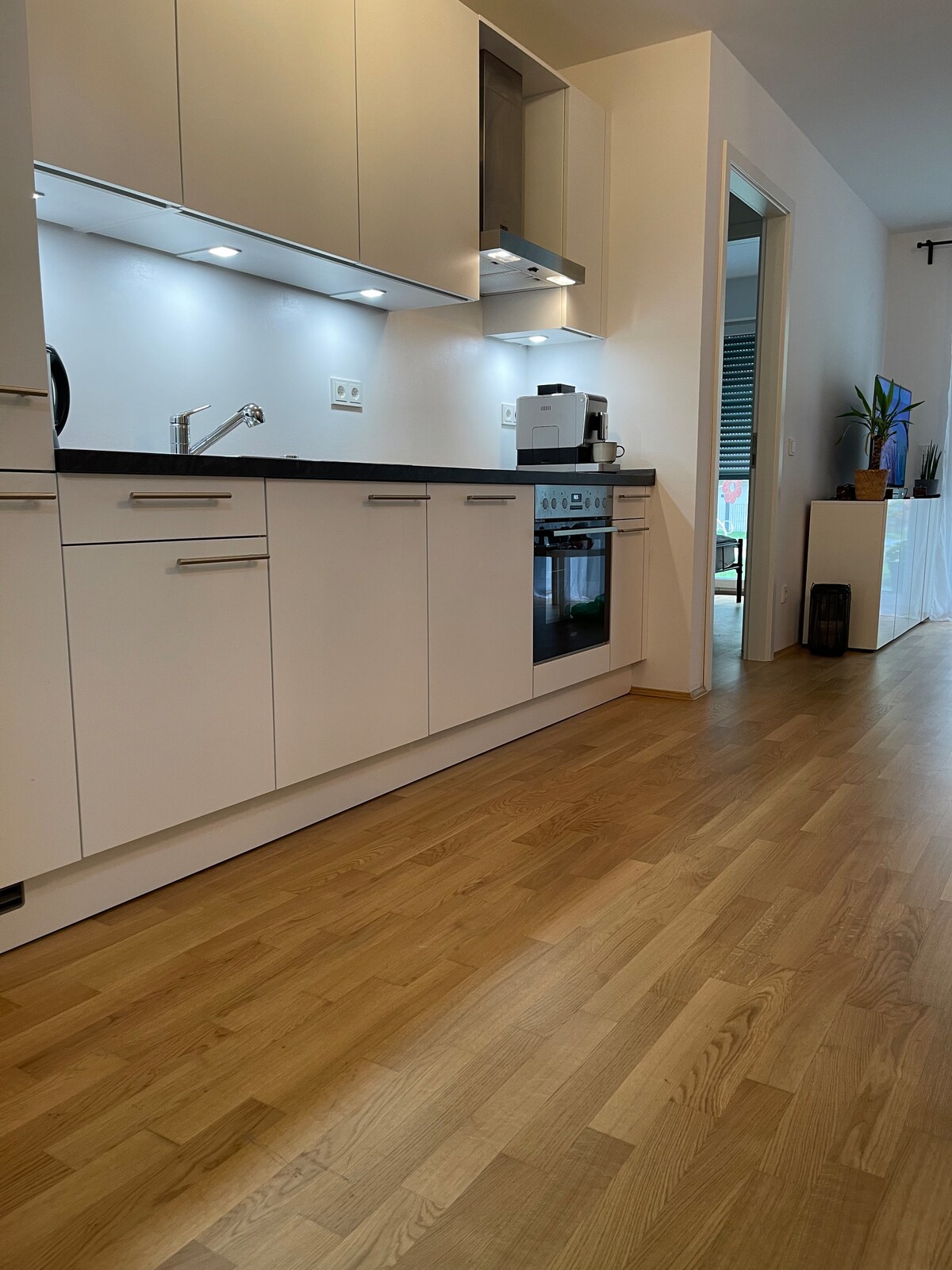 Apartamento lujosamente renovado. La amplia sala de estar/dormitorio, la pequeña cocina con estufa, cafetera, lavavajillas y nevera grande, así como el moderno baño ofrecen la máxima comodidad. Lo más destacado: la impresionante vista al atardecer. Acceso directo al metro (U1, U3, U7) a través del centro comercial (50 metros). El Parque Olímpico y el Estadio Olímpico con muchas oportunidades recreativas están a la vuelta de la esquina. Estación de carga para autos eléctricos disponible.