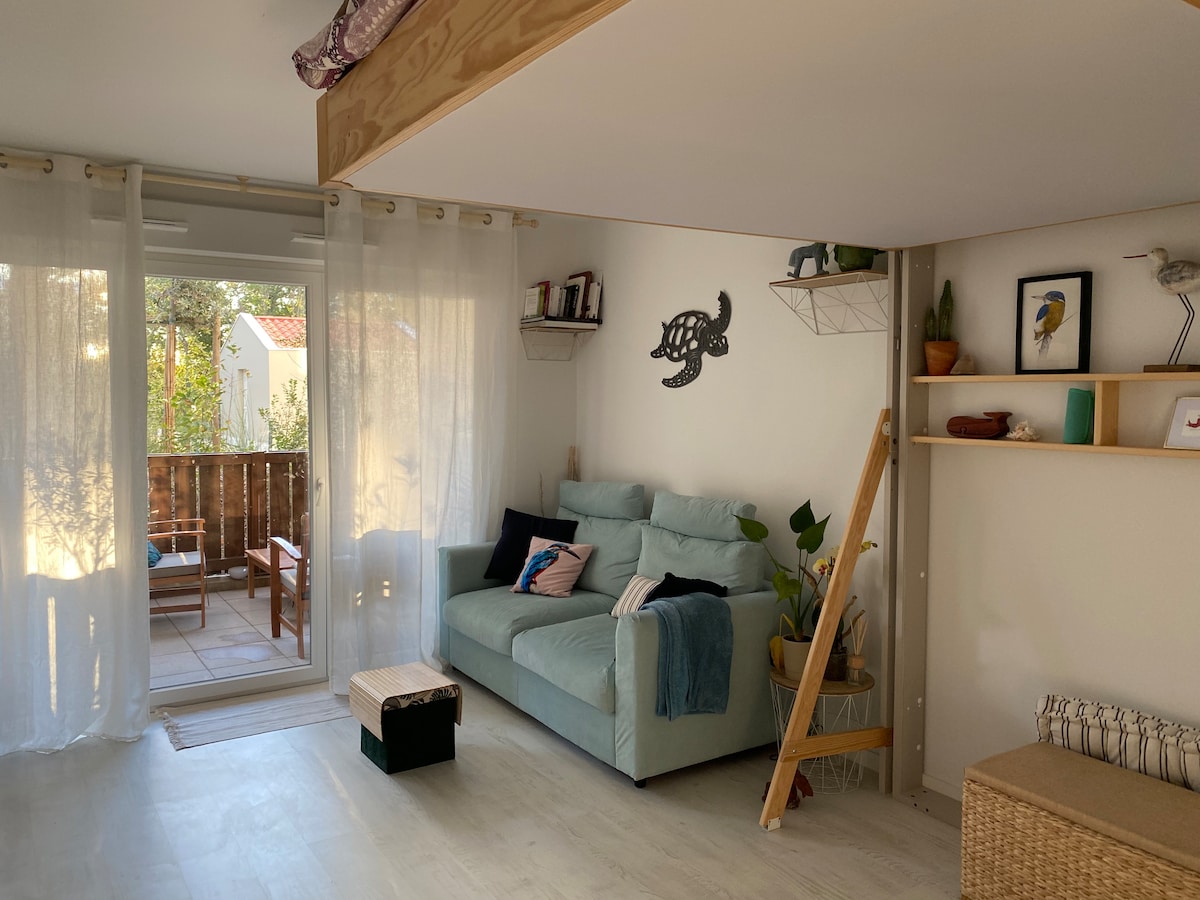 Estudio totalmente equipado y con una pequeña piscina privada, así como aire acondicionado. A pocos minutos de la playa y del centro de la ciudad. Entorno tranquilo y verde. 2 bicicletas disponibles. Cerca de Hossegor, Capbreton, Biarritz. Se puede ir a todas partes a pie o en bicicleta. En verano, servicio de transporte gratuito a la playa a 300 metros. Se alquila con sábanas, toallas y productos de limpieza. Solo adultos.