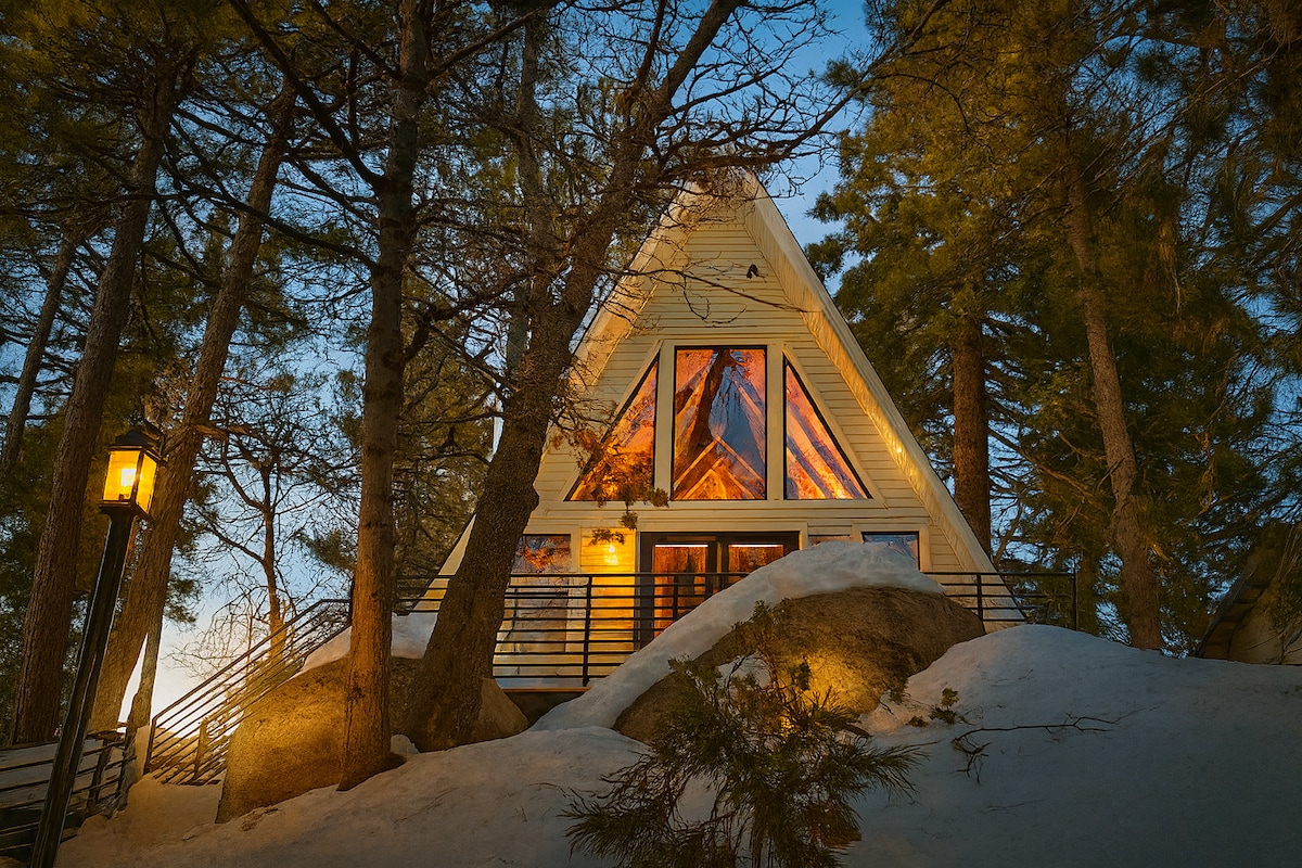 As you walk up stairs passing native boulders and trees, you see an A-frame cabin in the woods begin to peek out, inviting you. Once upon the front deck, the large pane windows draw you into this spacious, high-ceiling, open-concept cabin. Inside, these same windows that drew you in, will encourage the same gazing now, except outwardly. Tastefully designed and relaxing, you may not want to leave, though Big Bear, and Lake Arrowhead all beckon within 30 mins drive... Welcome to The Scandia 🦌