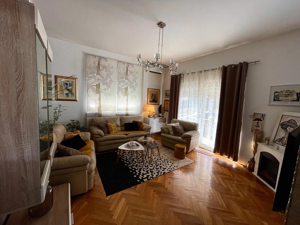 Luminoso y cómodo apartamento con dos baños en la primera planta de la villa. Ubicado en una zona tranquila, ideal para aquellos que buscan paz y relajación. Enorme terraza. Perfecto para parejas o familias. Además, disponible: piscina y zona de barbacoa al aire libre compartida con los demás huéspedes de la villa, aparcamiento para coches en el perímetro de la casa (máximo dos plazas), garaje para motocicletas. Playa a 6 km, centro de Rijeka a 5 km. Posibilidad de +1 o +2 personas (sofá cama).