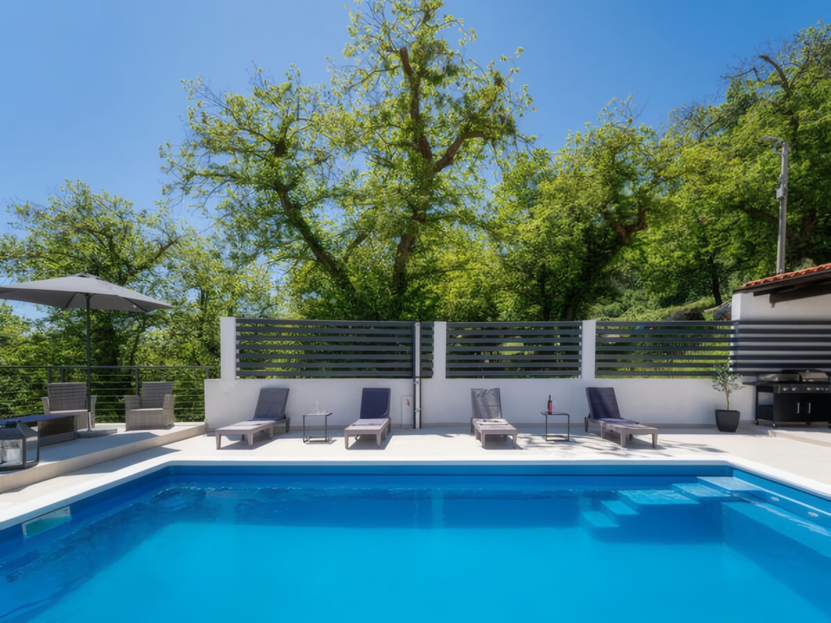 Enjoy a private terrace and pool with breathtaking panoramic sea views over Kvarner Bay. The hous features a traditional BBQ area and space for both kids and adults to relax and unwind. Located near Lovran, it offers complete peace and privacy. Just 4 km from Lovran and the sea, and close to Učka Nature Park. Perfect for families and nature lovers seeking a relaxing escape.
