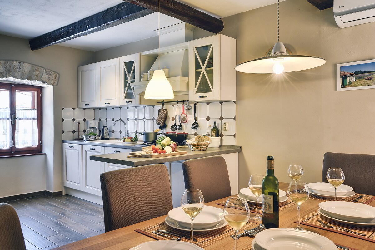 Welcome to Casa Maggiolina, a restored 19th century stone beauty of 85 sqm with a 94 sqm private yard, nestled in a quiet Istrian village. Only 15 km from Pula and the coast, 10 km from the medieval town of Svetvinčenat and 10 km from Vodnjan. This is not just a place to stay, this is a place where century old stone walls, a single olive tree and quiet Istrian days do what every holiday should, remind you why rest is a luxury everyone deserves.