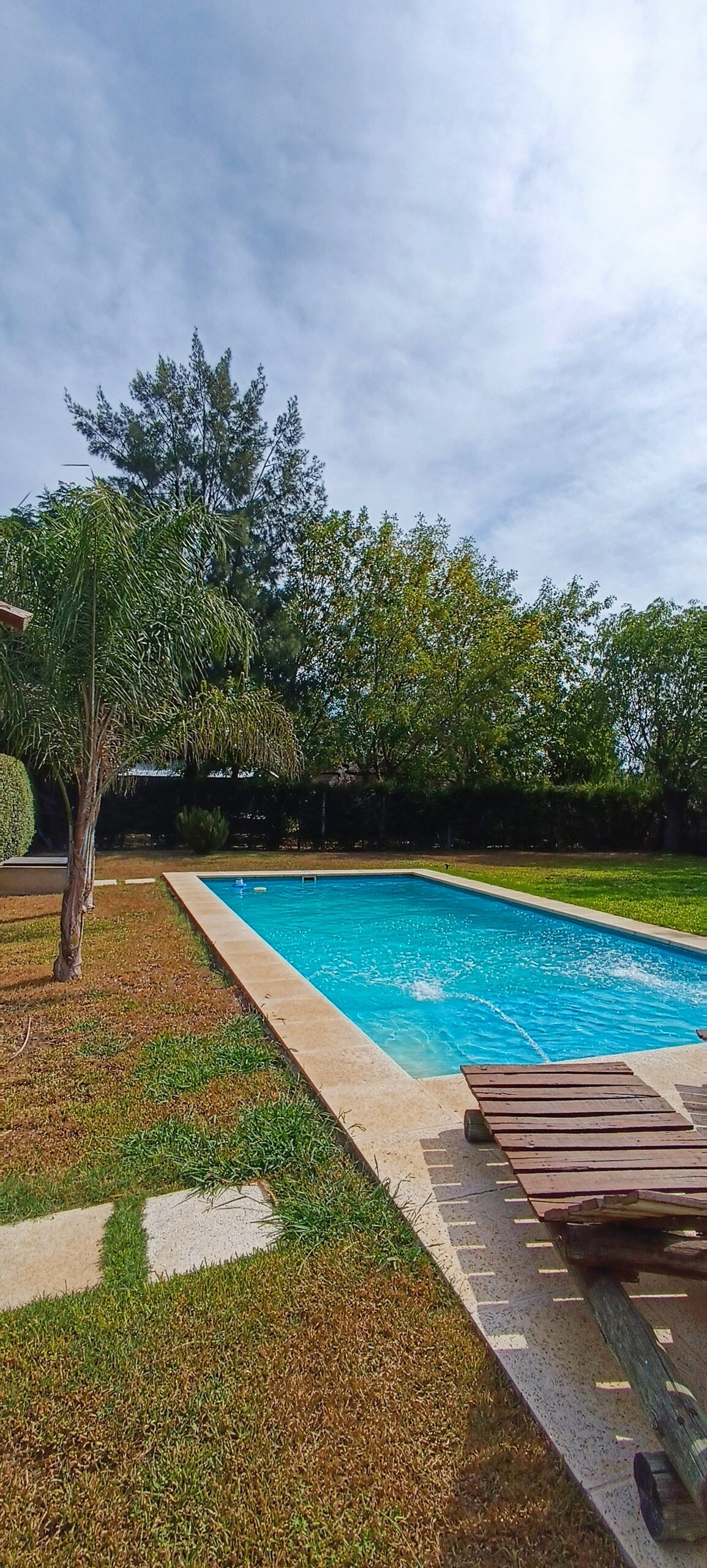 Relajate en este alojamiento de casa campestre dentro del "Club de Campo" (seguridad 24hs con vigilancia de cámaras térmicas en todo el perímetro del barrio, además de rondas de PolAd) con todas las comodidades de la vida moderna, pileta (8 mts de largo), una increíble vista y hermosos atardeceres. Relajáte en el campo a sólo 50 min de Bs. As. y 15 min de Pilar! único y tranquilo. Espacio de pernocte para 10 personas. Comodidades y espacios hasta 16 personas (como máximo) para pasar el día.