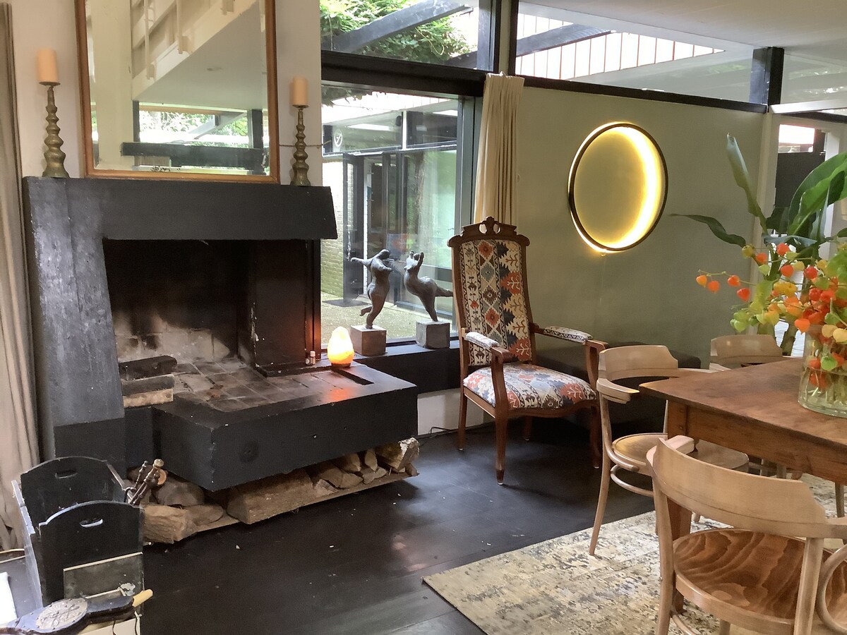 ¿Fin de semana familiar o vacaciones de verano en un pueblo histórico de artistas nobles en bosques? 9 personas, amplia sala de estar con chimenea, loft/sala de juegos de TV, enorme jardín, lote de 2500 m2, columpio, a 100 metros del club de tenis hotel Lauswolt, galerías, a 30 minutos de los lagos de Frisia. Bicicletas en alquiler en el centro de la ciudad.