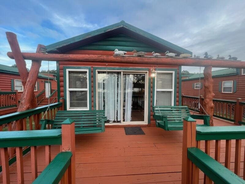 Aléjate de todo y duerme bajo un manto de estrellas. Simplemente relájate y disfruta de un entorno tranquilo con muchos senderos para caminar e incluso para montar en bicicleta. Desayuna en el porche delantero o en el cenador cercano. Esta cabaña tiene una cama tamaño queen y un sofá cama adecuado para 4 personas. No se admiten mascotas ni se permite fumar. Además, al menos un huésped debe estar registrado en Airbnb. Gracias. Tiene una ducha caliente y está a solo 6 millas de la ciudad, donde puedes encontrar lugares de comida rápida y un Walmart.