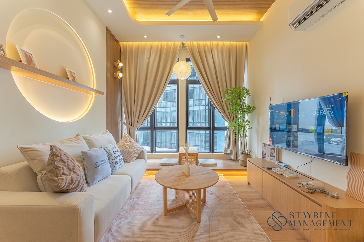 (1+1 dormitorios y 1 baño) Apartamento contemporáneo, moderno y acogedor en el corazón del centro de la ciudad de JB. Adecuado para familias de 4 personas, amigos y grupos de negocios. **A 5 minutos de CIQ, City Square, KSL, Pelangi y Larkin **A 8 minutos de Mid Valley Southkey, Larkin Sentral y Sentosa **A 15 minutos en coche del centro comercial Paradigm, Sutera, Skudai y Mount Austin Televisor inteligente✔ 4K. Wifi de✔ alta velocidad y mesas de trabajo con enchufe de extensión. ✔ Lavadora ✔ Aire acondicionado en todas las habitaciones. Consola ✔ Atari, Mahjong y juegos de mesa. ✔ Aparcamiento GRATUITO para 1 coche.
