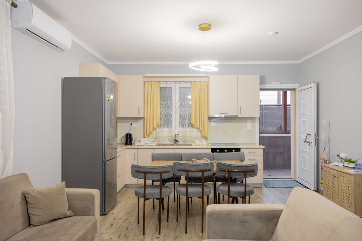 Disfruta del encanto de Kavala desde este elegante dúplex de dos pisos, a solo 5 minutos de la playa y a 15 minutos del centro de la ciudad. Con espacio para 8 huéspedes, cuenta con 4 dormitorios tamaño queen, una sala de estar luminosa y una gran terraza con impresionantes vistas al horizonte. La cocina totalmente equipada hace que el comedor sea fácil y el wifi rápido te mantiene conectado. Ubicado en el segundo piso sin ascensor, con garaje privado para estacionamiento seguro. ¡Perfecto para familias o grupos!