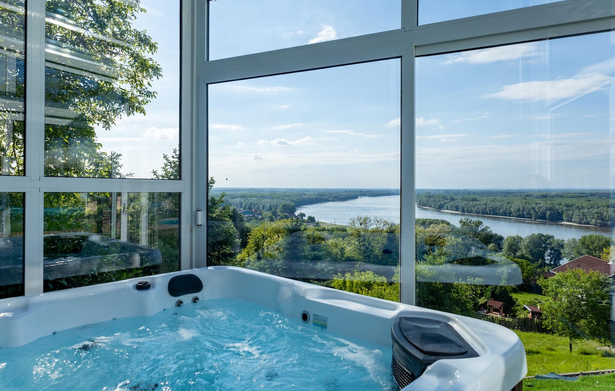 Escape to a luxury riverfront home with a private pool overlooking the Danube and breathtaking sunset views. This spacious home for up to 7 guests features a sauna in the bedroom and a jacuzzi in a glass lounge, creating the perfect wellness retreat. Enjoy outdoor dining, BBQ, and a relaxing lounge area, ideal for families or groups seeking privacy, nature, and unforgettable moments by the river. Experience complete peace, stunning views, and a unique connection with nature.