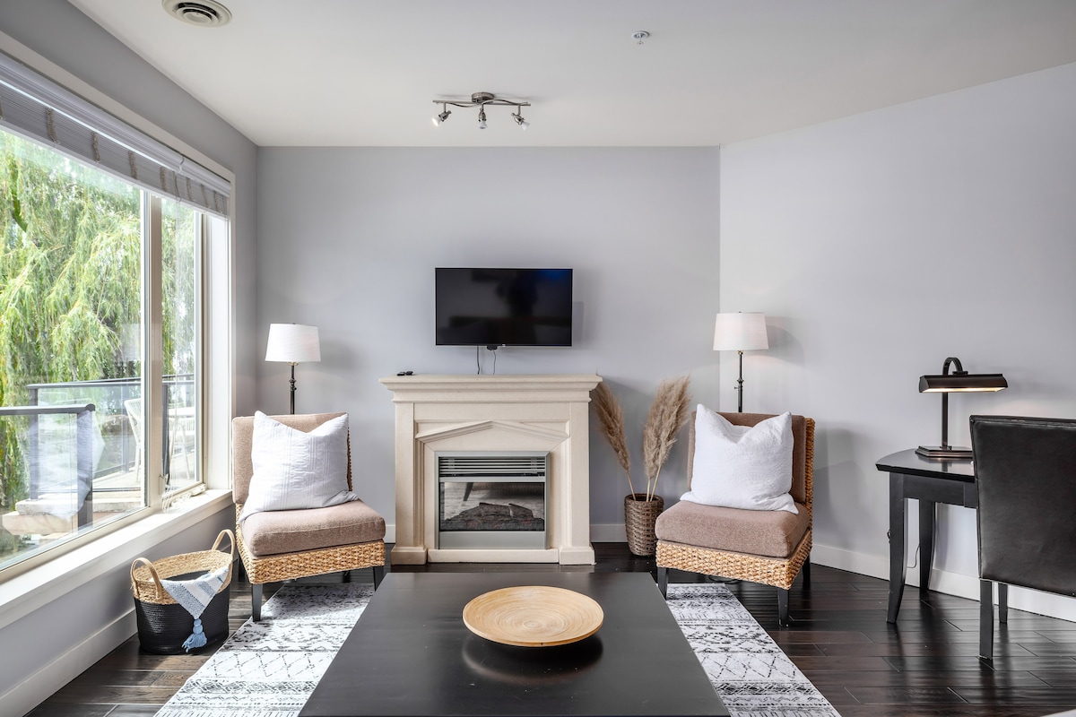 Ubicado en la tranquila Upper Mission de Kelowna, a solo 3 minutos de Summerhill Winery y a 20 minutos del centro de la ciudad. Disfruta de una suite privada con vistas al lago y entrada independiente, exclusivamente para tu grupo (sin zonas compartidas). Ofrece 2 dormitorios con camas tamaño queen, un baño nuevo y una amplia sala de estar con TV, sofá cama y mesa de comedor. No hay cocina completa: microondas, nevera y cafetera (sin fogones/lavavajillas). Exterior: bañera de hidromasaje, barbacoa e impresionantes puestas de sol en el lago. Horario tranquilo después de las 10:00 p. m.