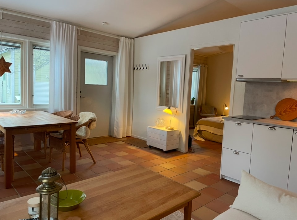 Casa de huéspedes recientemente renovada de unos 40 m2 de espacio, con la mayoría de los servicios de un alojamiento. Proximidad al agua con una pequeña playa que en invierno es un sendero popular. Relativamente céntrico y cerca de autobús o tren. La casa de invitados se encuentra en la misma propiedad que La residencia de la familia anfitriona. Aprox. a 5 minutos a pie del gimnasio y la pizzería. A 10 minutos en bicicleta de la tienda de comestibles, a unos 15-20 minutos en bicicleta de la ciudad. Hay plazas de aparcamiento disponibles. Si sois más de 2 personas, hay camas adicionales que se pueden alquilar por un cargo adicional. Nota: el suelo es frío en invierno