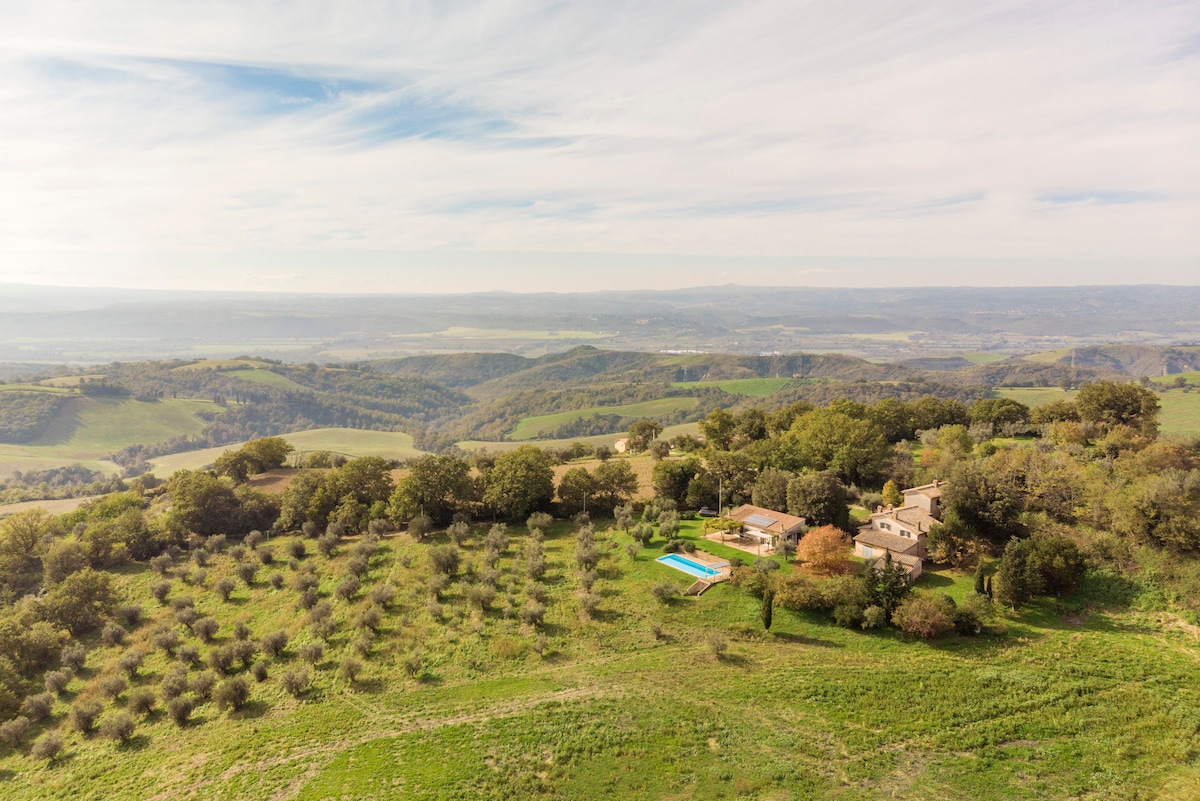 Casa de campo panorámica en la cima de la colina