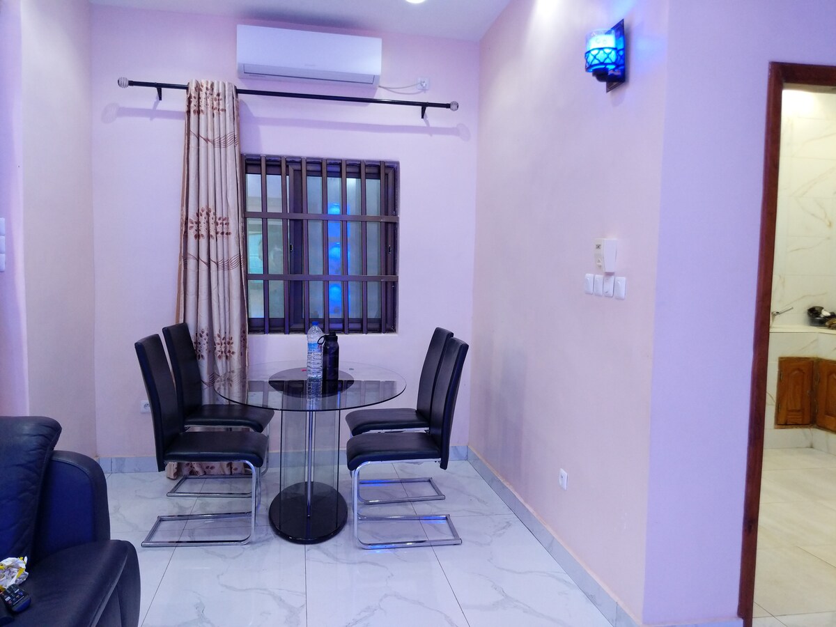 Appartement très spacieux et lumineux de 2 chambres, salon avec salle à manger, une salle de bain dans chaque chambre, une toilette visiteur, une cuisine et un balcon. Il séduit par son approche de luxe business et vacances. Il est situé en plein centre ville de Cotonou Akpakpa au bord des pavés en face de la pharmacie segbeya dans une zone sécurisée, à 15 minutes de l'aéroport international, à 5 minutes de la plage, à 5 minutes du grand marché de Tokpa. Ce logement est climatisé et calme