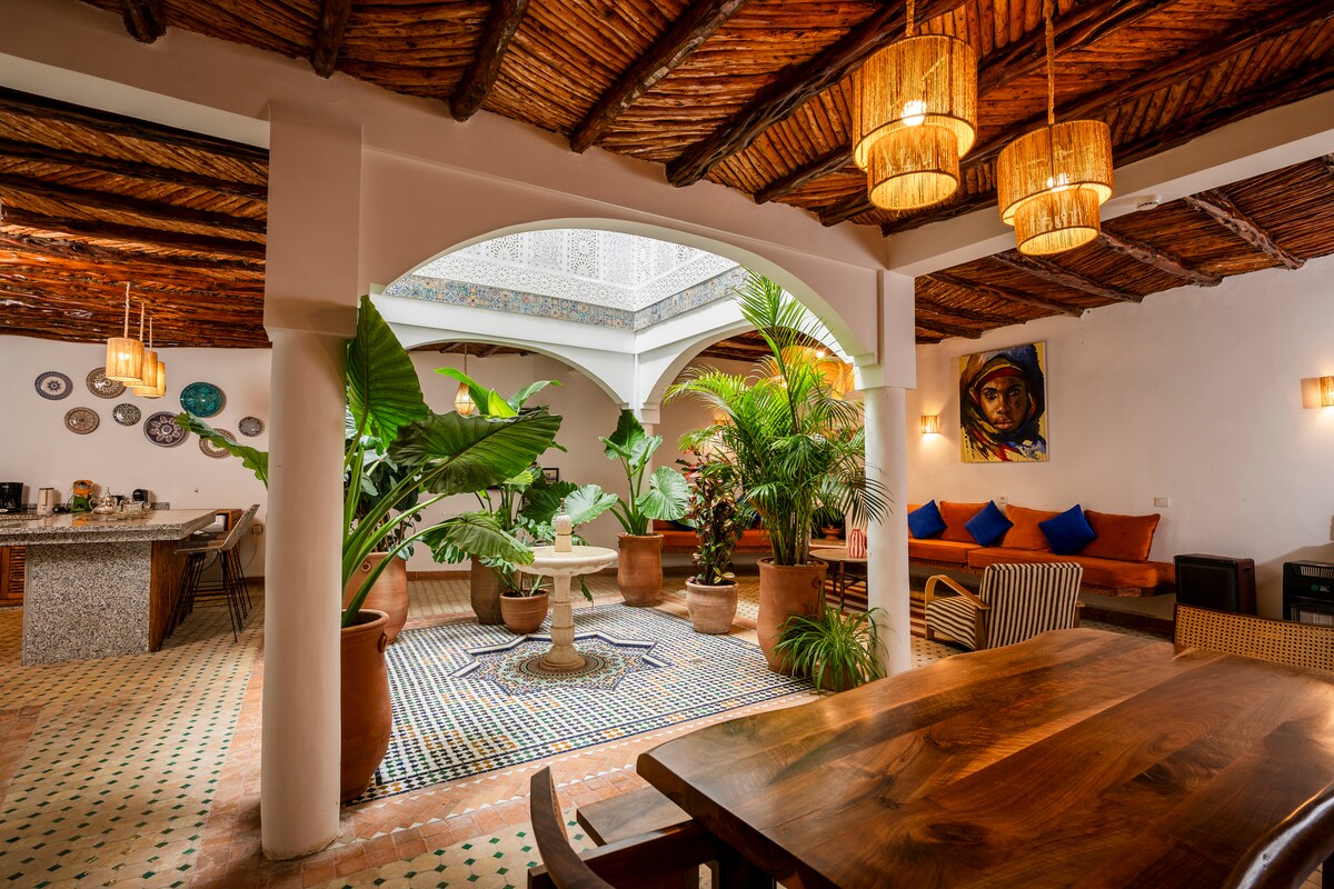 Adéntrate en tu tranquilo refugio en la histórica medina de Esauira, en nuestro encantador riad familiar y de fácil acceso. Restaurado y cuidado con esmero, el riad fusiona el alma del patrimonio árabe, bereber y judío de la ciudad en cada detalle. Este espacioso riad tiene 5 dormitorios en 2 plantas. Disfruta de la terraza, una fuente y una auténtica experiencia marroquí con todas las comodidades modernas. Acompáñenos en un viaje inolvidable en el tiempo y la cultura. Deja que el espíritu de Essaouira te abrace.