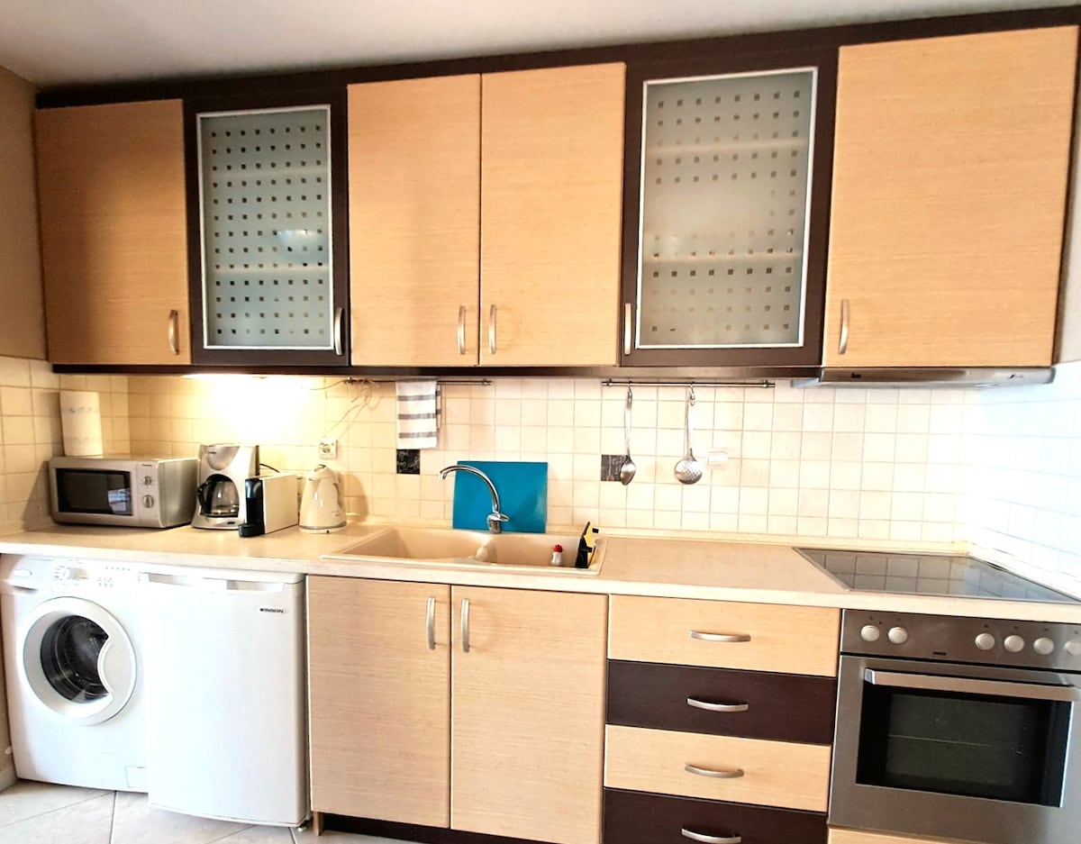 Este moderno loft se encuentra frente a la playa y ofrece impresionantes vistas al mar desde su balcón privado. El interior (renovado en 2022) cuenta con un diseño contemporáneo y permite mucha luz solar. El área del loft es de 45 metros cuadrados y consta de una sala de estar, un comedor con cocina totalmente equipada con electrodomésticos, un baño privado y un área de dormitorio. La ubicación permite un fácil acceso a las hermosas playas de la zona, así como a una variedad de restaurantes y tiendas.