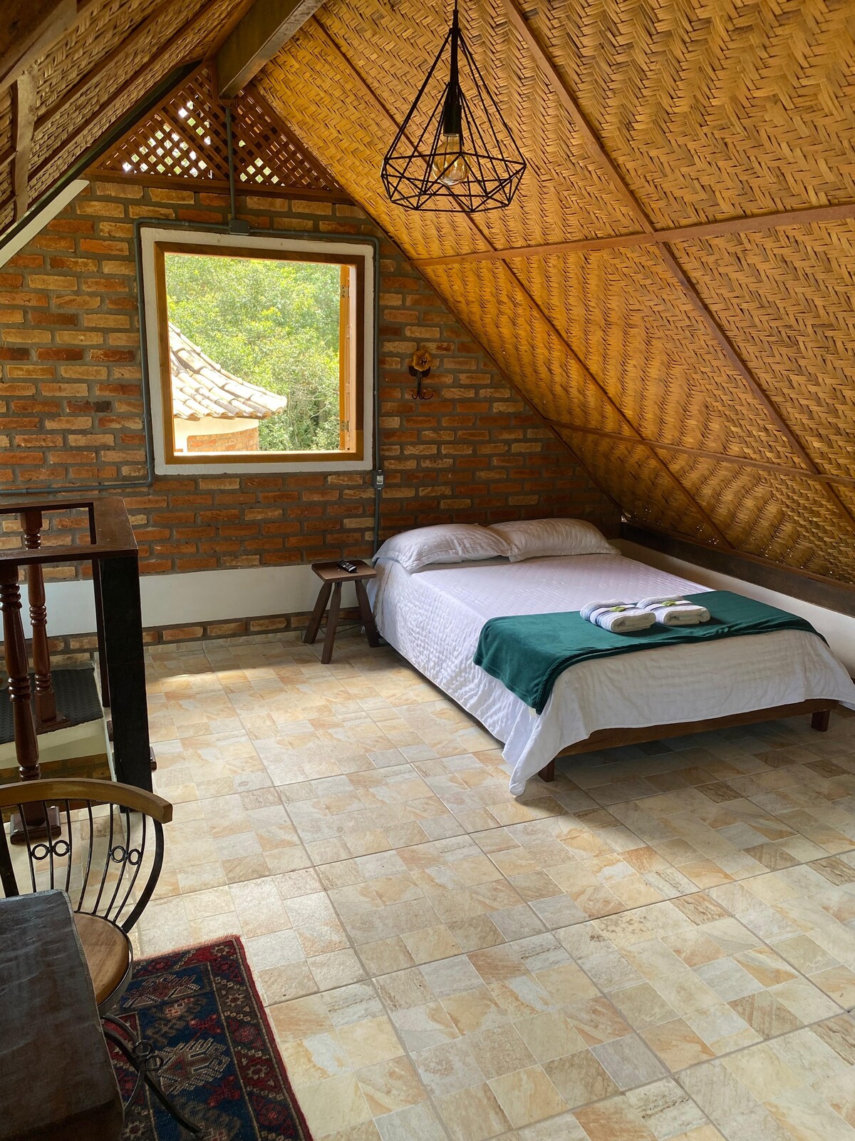 Construida con la técnica ancestral del pau-a-pique, la cabaña une el encanto rústico a la comodidad. A minutos del centro histórico de Ouro Preto y Cachoeira das Andorinhas. El espacio está rodeado de naturaleza y tiene una habitación grande, bañera de hidromasaje privada, balcón y minibar exclusivo. En el área compartida también puedes encontrar una cocina con estufa de leña, hamacas, sofás, biblioteca y juegos. Un lugar hecho para aquellos que valoran experiencias sencillas, auténticas e inolvidables.