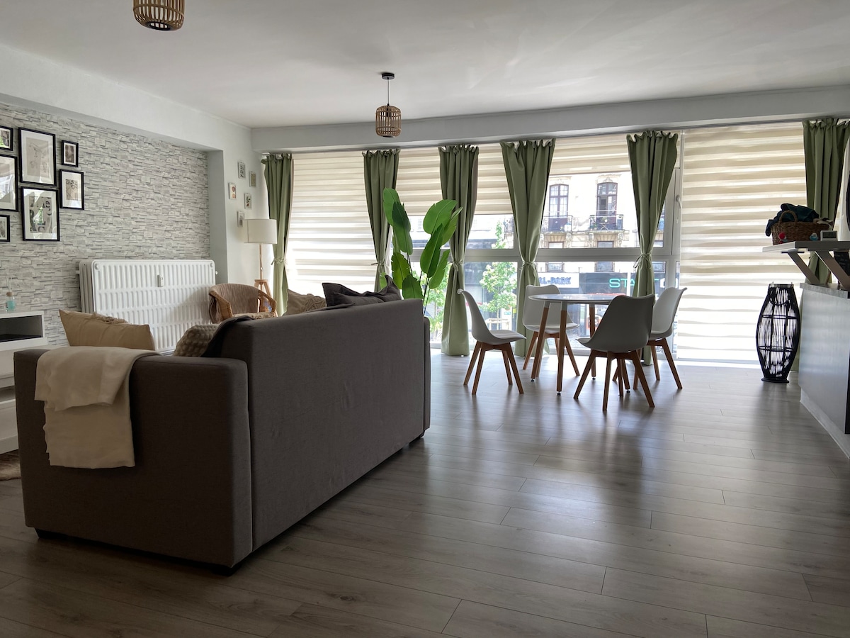 Disfruta de este elegante y céntrico loft de 70 m2. 1 cama y 1 sofá convertible en cama 2 personas Su aspecto de espacio abierto y su decoración depurada ofrece una hermosa luminosidad. Se encuentra en el bulevar más conocido del hipercentro de nuestra hermosa ciudad ardiente a pocos minutos a pie de la ópera, la plaza de San Lambert, el Palacio de Justicia, la montaña de Bueren y el famoso barrio «le carré» Estacionamiento seguro y de pago justo enfrente