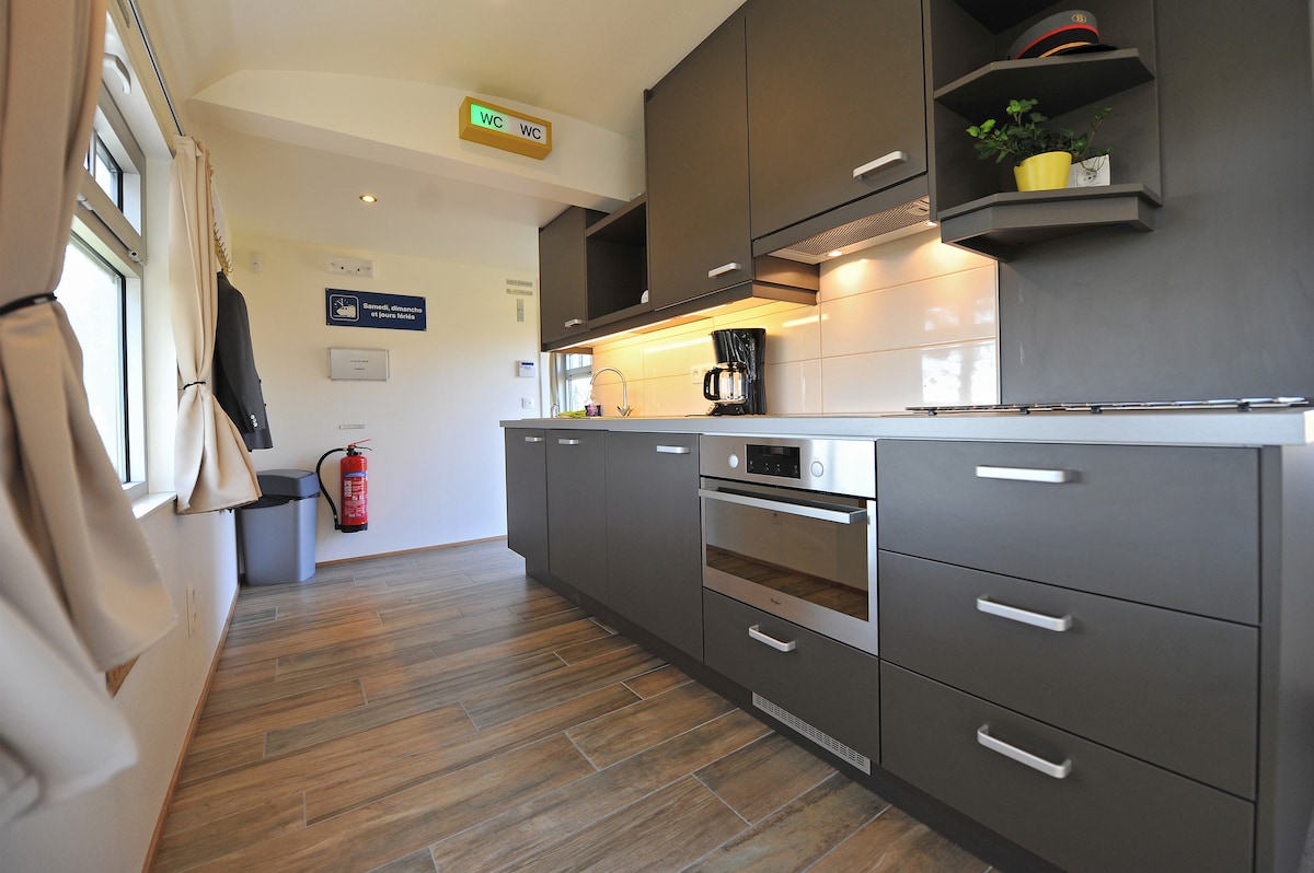 Welcom by Station Racour. You can stay in one of the two renovated M2 railway trains, that are arranged as unique and comfortable train holiday flats. Upto six people can be a guest in such carriage. Wifi available for normal use.