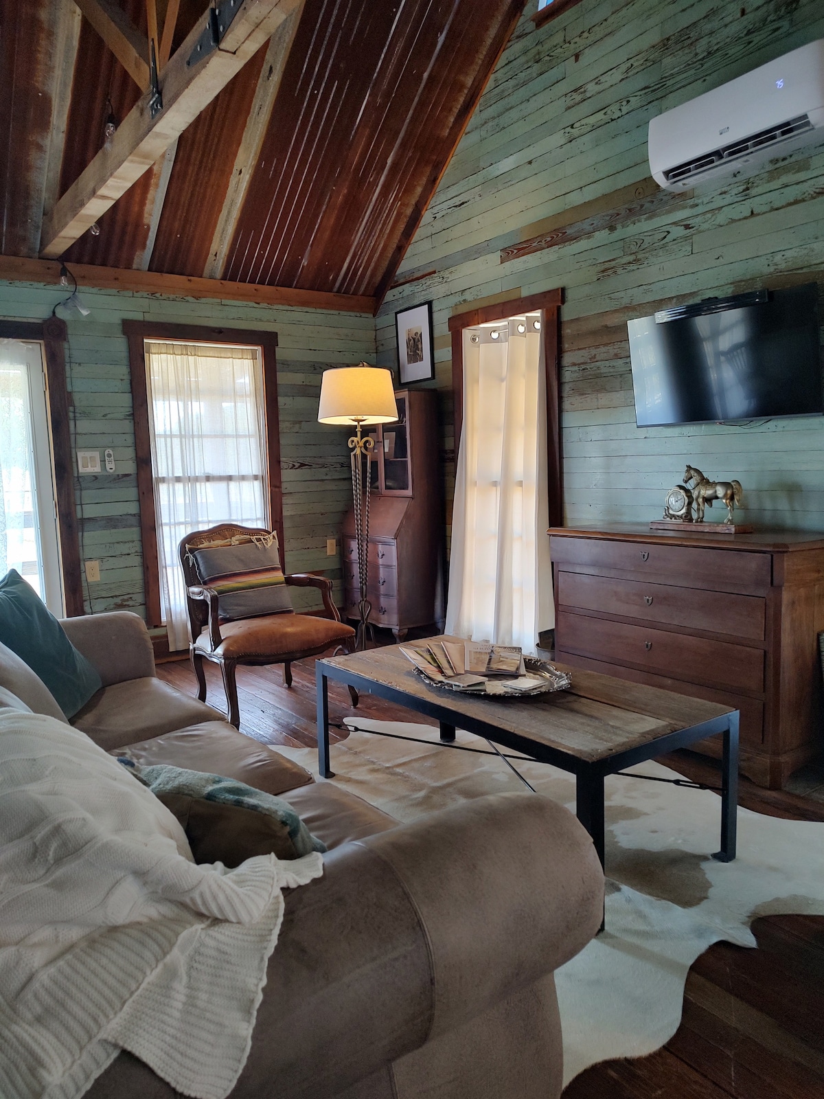 ✦ Un moderno pero acogedor, de 600 pies cuadrados. Barndominium con cocina completa y baño, una cama tamaño king, sala de estar, armario, Amazon, Netflix, Disney+, Roku y wifi rápido. Construimos el barndo en 2022 y lo amueblamos para Airbnb. Tenemos un televisor Roku en la sala de estar, así como en la habitación principal, configurado con una aplicación de Amazon y Netflix, que te da acceso a la red. Esto también te permite iniciar sesión en tus propios servicios de streaming como Hulu, HBO, Cinemax, etc.