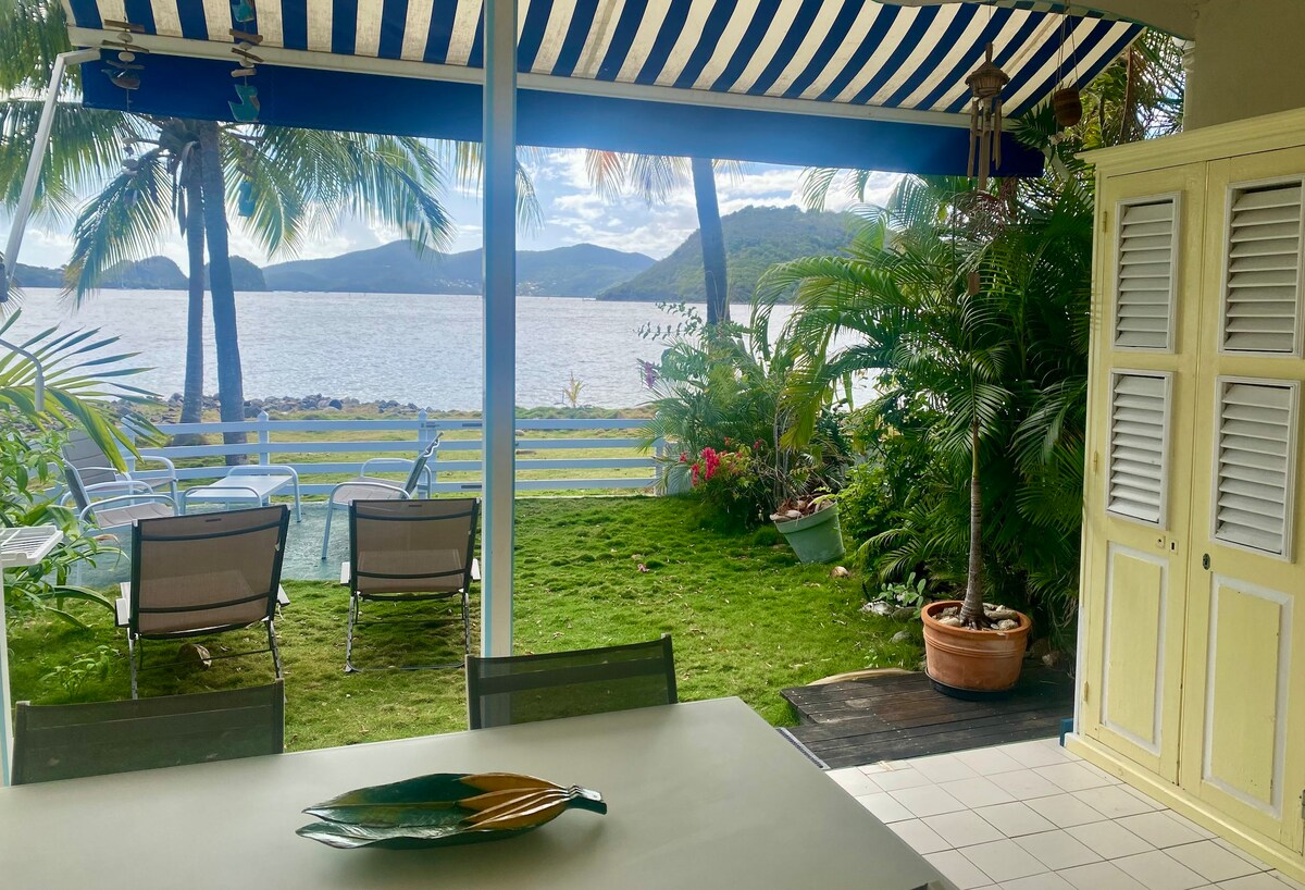 A orillas del agua en una playa de arena blanca nuestra casa está situada en Terre-de-Haut en el archipiélago de los Santos (Guadalupe), enclavada en el corazón de su maravillosa bahía y en el barrio típico de los pescadores de Fond de Curé. Cerca de todas las comodidades, no es necesario alquilar un vehículo para hacer la compra o para ir a la playa, todo está en el lugar. La casa tiene una superficie de 90 m2 en dúplex con una terraza de 30 m2 en el mar. Comodidad, tranquilidad y belleza que te llenarán de felicidad.