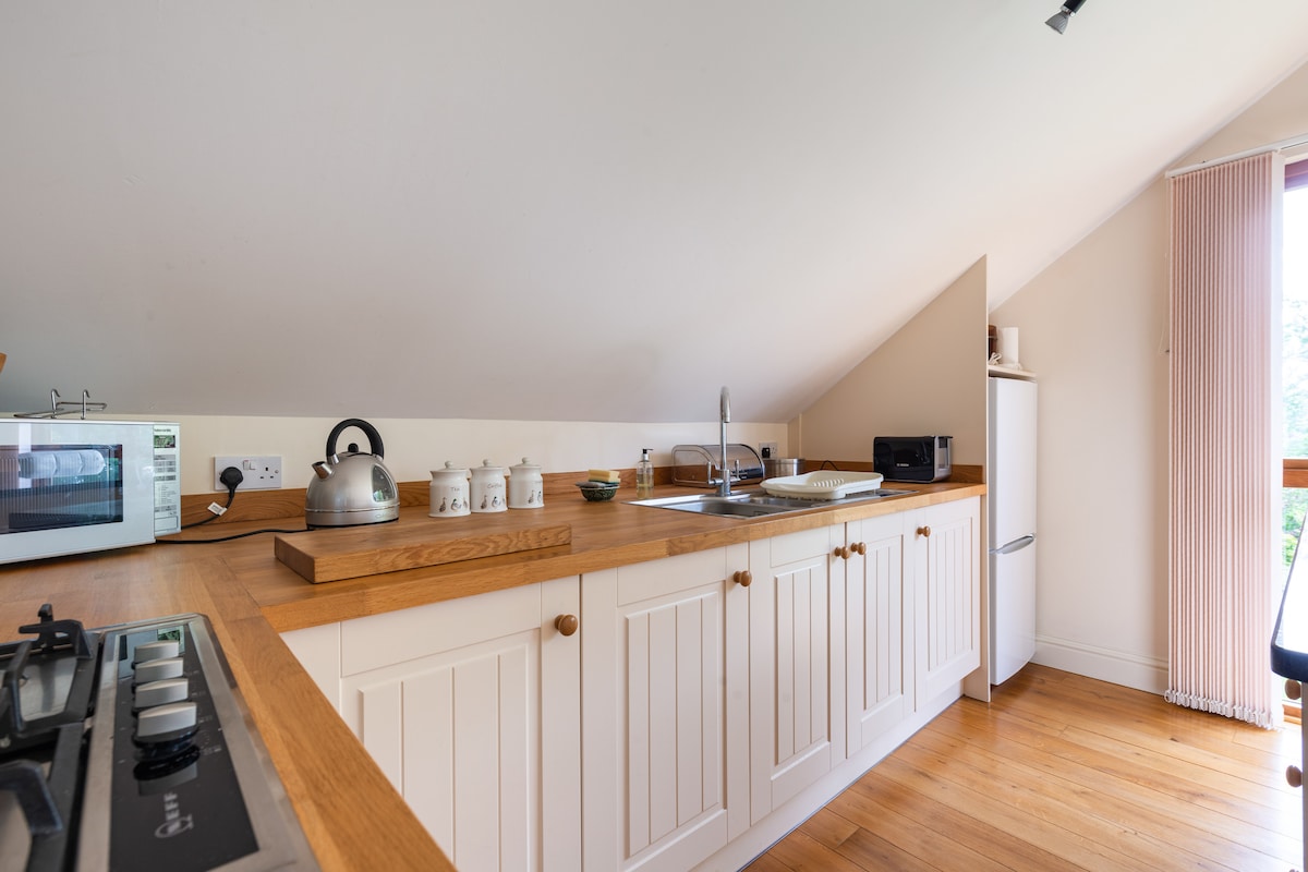 A stylish, open-plan lodge with mezzanine bedroom set within the grounds of our family home, just a short walk from Painswick village. Overlooking our garden, it offers a peaceful, open aspect in a quiet village setting. Enjoy private parking and walk to pubs, cafés, and shops, or use it as a base for walking, cycling, and exploring the surrounding countryside. Relax on the sunset deck or sample the local dining scene. Please note: The Lodge sleeps a maximum of 2 adults.
