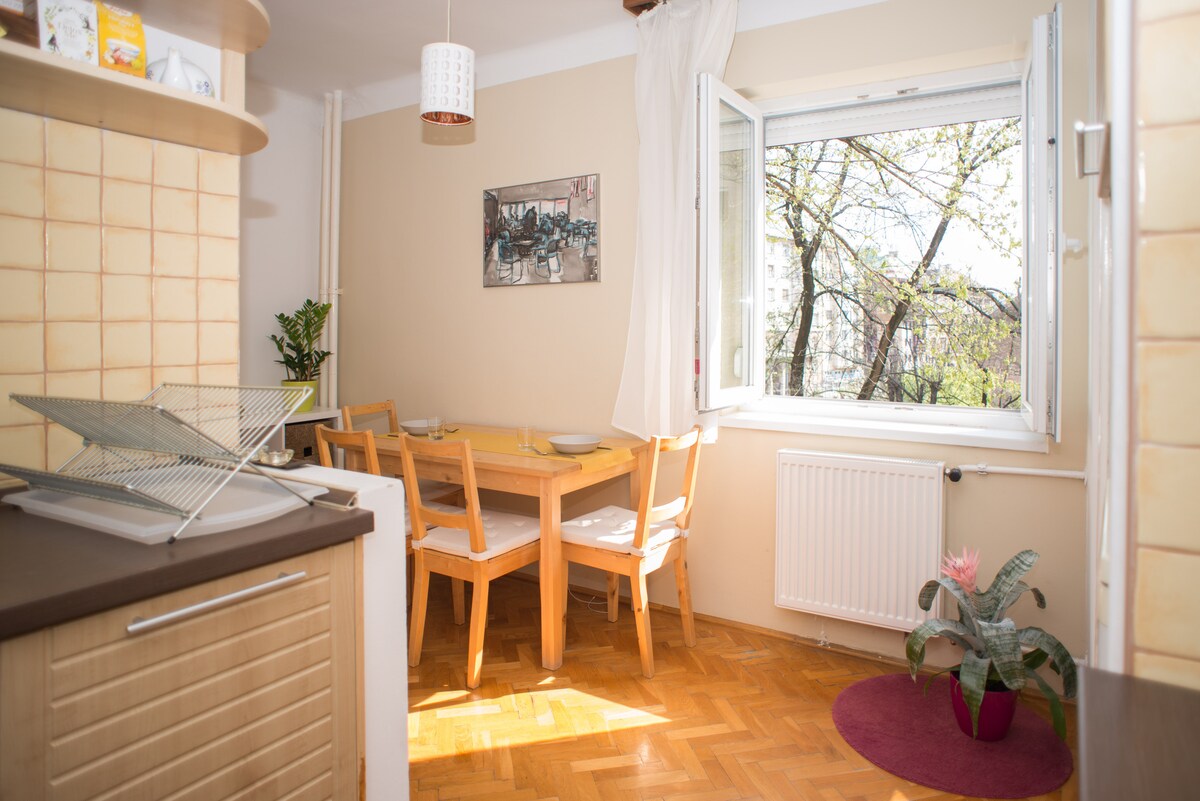 ¡Pasa un momento realmente romántico en Budapest, cerca de la isla Margit, el puente de las cadenas y el castillo de Buda en un apartamento acogedor y renovado con buen gusto donde puedes sentirte como en casa! El departamento consta de una habitación con cama doble real, una cocina equipada y un rincón de comedor y un cómodo baño. La casa tiene un bonito jardín mediterráneo y solo tres apartamentos, todos para nuestros huéspedes. (ideal para pequeñas empresas) - Habitación: TV, CD, WIFI, etc. cocina: cocina de cerámica, nevera, horno microondas, calentador de agua, cafetera baño: toallas, utensilios higiénicos, secador de pelo, ducha ¡WIFI GRATUITO disponible! Jardín con flores donde puedes desayunar, beber tu té. Se proporcionan toallas y ropa de cama. Tenemos estacionamiento seguro para bicicletas. Hay un estacionamiento al aire libre y vigilado a dos minutos. El apartamento está perfectamente situado, hay varias posibilidades de transporte masivo a 5 minutos a pie. El acceso directo con el autobús n .º 86 (cada 10 minutos) al castillo de Buda, Chain Bridge, metro) y el autobús n .º 9 te lleva directamente a la estación de tren de Nyugati, a Deák tér, al centro comercial Astoria (centro), o en Hév al festival Sziget y a Szentendre también, el CEU es nuestro barrio también. - Estación de barcos del Danubio (barcos arrojados hacia el norte y el sur). - HÉV (línea de transporte suburbano) con transporte rápido a Szentendre. Si quieres dar un paseo por el Danubio, puedes llegar al centro de la ciudad o a la isla Margit en 15 minutos. La popular isla Margit se encuentra a poca distancia. La famosa confitería Daubner en la calle. http://daubnercukraszda.hu/ (Me encanta su Flódni, que es un postre tradicional húngaro con semillas de manzana, nueces y amapola). Los spas están a unos 10 minutos, por lo que puedes disfrutar de las diferentes salas de vapor y piscinas en hermosos baños públicos históricos. Los centros comerciales (Mammut, Westend City Center) están a 15 minutos. Punto de partida ideal para descubrir diferentes partes de la ciudad, incluido el verde Budapest. Con respecto a la hora de entrada y salida: soy flexible en ambas. ¡Descubriremos qué es lo mejor para todos! :-) También es posible llegar tarde por la noche o temprano por la mañana, solo avísame con antelación. Si preguntas de costumbre, puedo hacer la recogida desde el lugar donde llegas, (aeropuerto 15 EUR). Avísame si tienes alguna pregunta, ¡quiero asegurarme de que tengas una estancia agradable!