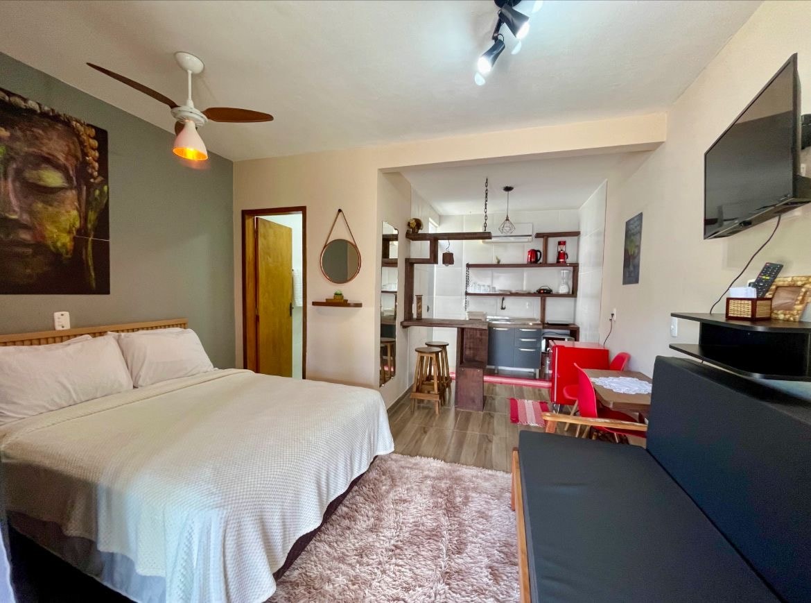 Nuevo Loft ... está a 200 metros del mar de Balneário Ponta do Papagaio, en Palhoça, costa de Grande Florianópolis. Estarás entre las playas más hermosas ... Do Sonho, Praia Mar Aberto, Praia da Pinheira y tendrás fácil acceso a la famosa Praia da Guarda do Embaú y Vale da Utopia. Ambiente en concepto Espacio Abierto, tiene capacidad para 2 personas. Cuenta con cocina equipada con Airfryer, minibar, cocina, sandwichera. Habitación con ropa de cama y toallas, Smart TV, aire acondicionado Inverter Central.