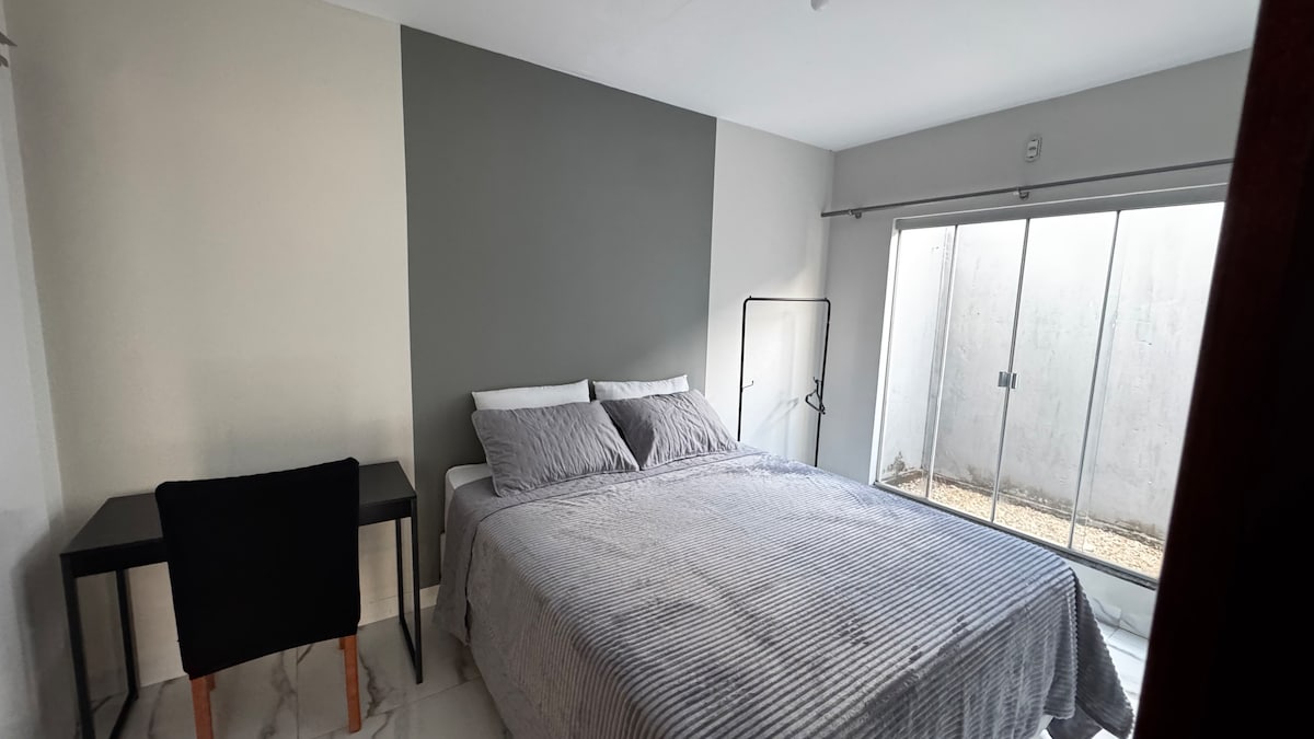 *Espacio privado. *Al lado del gimnasio blufit *Al lado de los principales hospitales *Wi-Fi gratuito. *Ambiente familiar. *Garaje con 4,40 centímetros. *Cocina bien equipada. *Aceptamos a tu mascota." informado en la reserva, *No se permiten visitas. *Espacio individual. *Aire acondicionado. *Plancha *selfie check-in