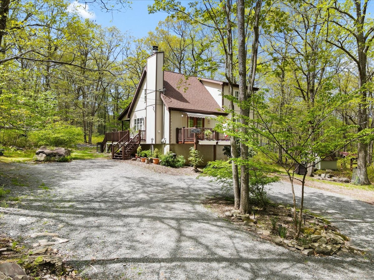 Relájate en la naturaleza cuando te hospedes en este tranquilo refugio situado en 2 acres tranquilos de un maravilloso bosque. La cabaña de 2 dormitorios y 1 baño tiene capacidad para hasta 8 huéspedes. La espaciosa sala de estar y el amplio espacio de cocina aseguran que entretener a tu grupo sea pan comido. Terraza al aire libre con parrilla para noches de barbacoa. El porche delantero cubierto es ideal para ver la vida silvestre pasar a través de la propiedad. ¡Acurrúcate junto a la hoguera para divertirte más! ¡Disfruta explorando todo lo que las Pocono te ofrecen cuando te hospedes aquí!