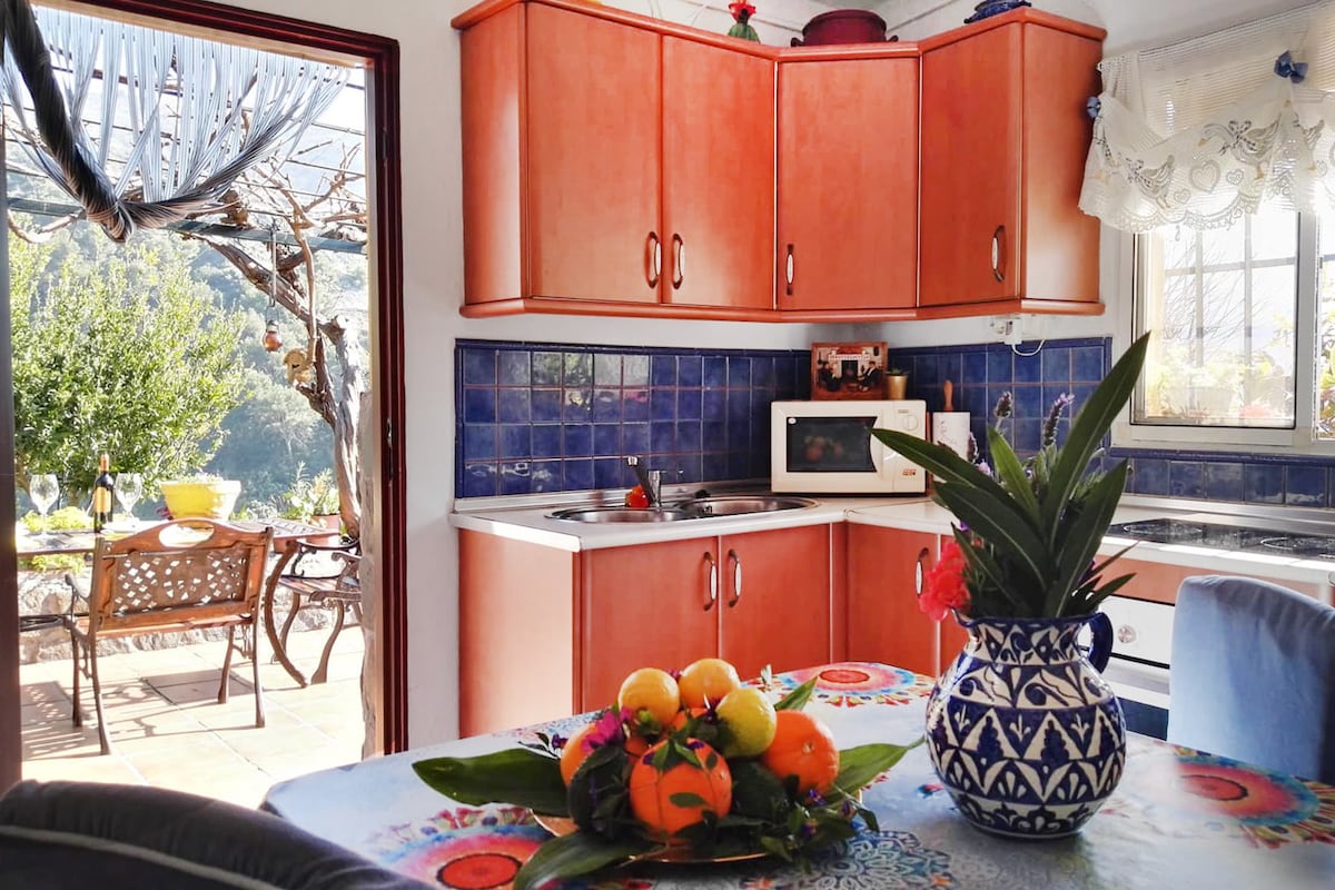Se trata de una casita rural situada en la sierra de la Alpujarra. La casa tiene unas vistas preciosas y esta situada en mitad de la sierra. Es un tipo de casa sostenible que cuenta con placas solares y agua procedente directamente de la sierra. La casa cuenta con un balcón para poder disfrutar de las vistas mientras comes o ver las estrellas mientras cenas. Cuenta con salón con un sofa-cama y una chimenea, una cocina con todos los utensilios necesarios para cocinar, baño y dormitorio principal