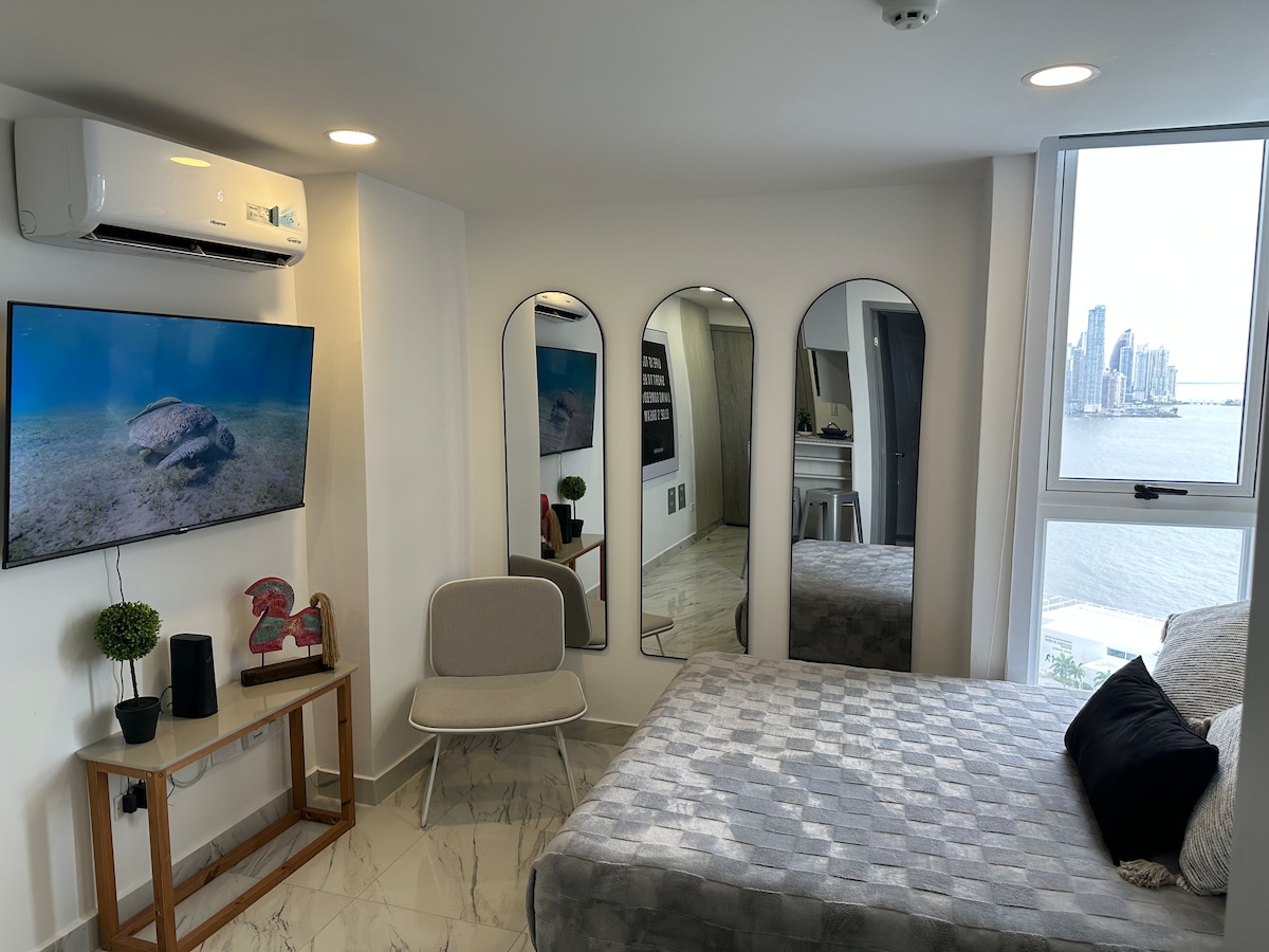 Disfruta de una estancia en una de las zonas más exclusivas del centro de Panamá, a pocos minutos del Casco Viejo. El acogedor apartamento del centro de la ciudad ofrece conexión wifi gratuita, aire acondicionado y vistas impresionantes entre rascacielos. El apartamento tiene un dormitorio con una cama tamaño queen, una bañera y ducha, un sofá cama, dos televisores inteligentes, una cocina totalmente equipada, una lavadora y secadora, y un medio baño. En la propiedad hay una zona de trabajo, un gimnasio, una piscina comunitaria y una zona de barbacoa. APARCAMIENTO GRATUITO