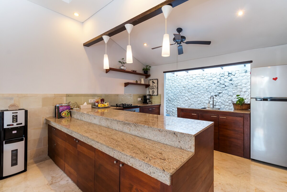 Villa Nadi, una escapada de lujo a pocos minutos de la playa. Ubicado en un entorno verde y exuberante y junto a un río tranquilo, pero cerca del corazón de Seminyak y Canggu. Esta espaciosa y moderna villa ofrece 3 dormitorios bellamente diseñados con baño privado, piscina privada y cocina totalmente equipada. Disfruta de servicio de limpieza diario, wifi de alta velocidad y total privacidad en un entorno tranquilo. ¡Perfecto para quienes buscan lujo y comodidad!