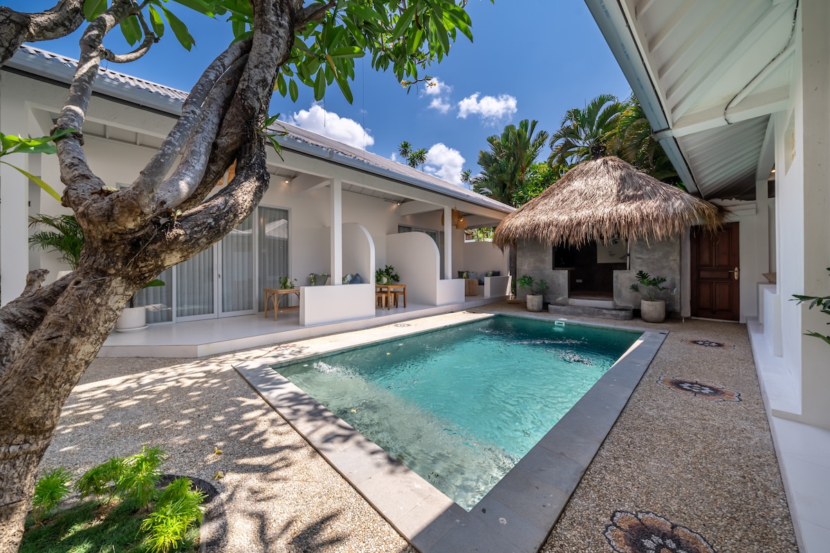 Acogedora casa de huéspedes Umalas en Canggu, una habitación con piscina