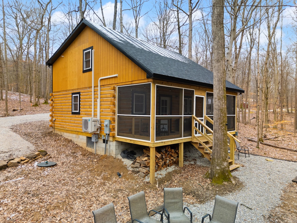 Cabaña histórica de troncos teñidos a mano con servicios modernos. El gran césped es un parque que incluye una parrilla de carbón, un pozo para fogatas y una mesa de picnic perfecta para comidas al aire libre y s'mores. Escapada tranquila donde los huéspedes pueden simplemente relajarse lejos de las luces y el ruido de la ciudad. A 15 minutos de Salem, a 30 minutos de Paoli Peaks, a 45 minutos del casino French Lick o de Louisville, Kentucky. Varios parques a una hora o menos en coche que ofrecen pesca, natación, senderismo, cuevas, ciclismo y piragüismo.