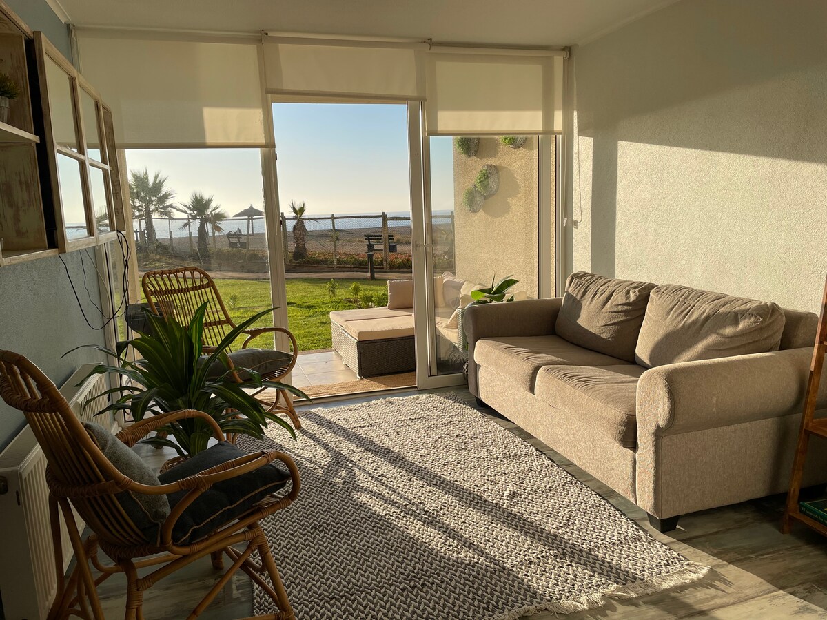 Terraza con linda vista al mar, humedal y protección para niños. 2 habitaciones, 2 baños. Salida directa a la playa. TV Cable HD, WIFI 600 MB y opción de Streaming. Cancha de Tenis, fútbol, juegos infantiles, y estacionamiento. Laguna con Kayak (solo fin de semana en temporada baja) + 3 Piscinas (solo verano) . Pequeña parrilla eléctrica en terraza. Tiene 1 estacionamiento, no se admiten mascotas. Sábanas y toallas opcionales con costo.