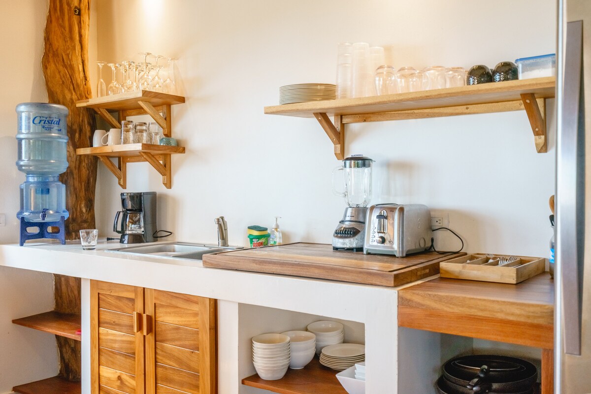A magical little house perched above the jungle, designed for comfort and serenity. Come relax and watch the waves from bed in this hidden gem of Playa Hermosa. Nestled into nature but just a 10-minute walk to Hermosa Beach, perfect for couples. The bungalow is next to our home, separated by a beautiful pool we share, but is fully private. It doesn’t have a kitchen but includes a few things for breakfast, an electric mini oven and a mini fridge.