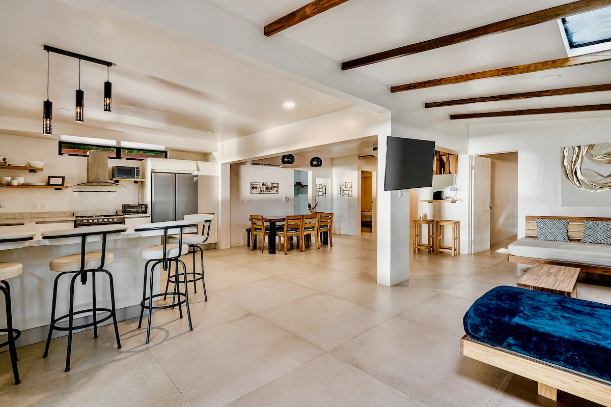 Escápate a nuestra impresionante casa, un elegante refugio enclavado en el bosque, a solo 12 minutos a pie de la hermosa playa local. Relájate junto a la piscina con el sonido de los monos y la sombra del bosque mientras disfrutas de las vistas de la famosa isla Tortuga. Disfruta de la tranquilidad de la naturaleza mientras estás a solo 7 minutos en coche de la encantadora ciudad de Paquera y a 13 minutos del aterrizaje del ferry. Esta zona es famosa por la bioluminiscencia durante todo el año y el fácil acceso a la impresionante Isla Tortuga.