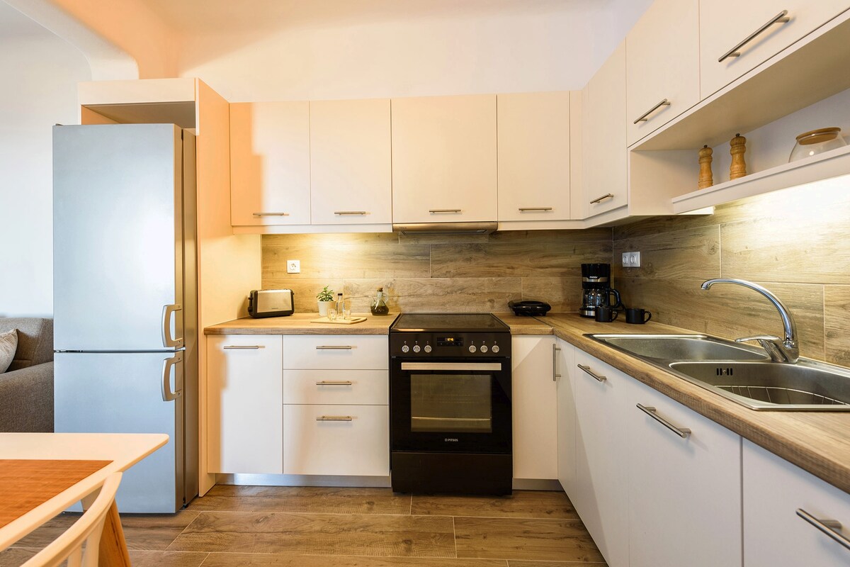 El apartamento está situado justo en el centro de Paroikia, dentro de la antigua calle del mercado, lo que te da acceso a casi cualquier lugar. El puerto está a solo 4 o 5 minutos a pie del apartamento, al igual que los aparcamientos, la estación de autobuses, numerosas tiendas, cafeterías, bares, panaderías y supermercados para tus compras de comestibles. Por último, pero no por ello menos importante, puedes visitar tres playas diferentes con solo caminar unos minutos.