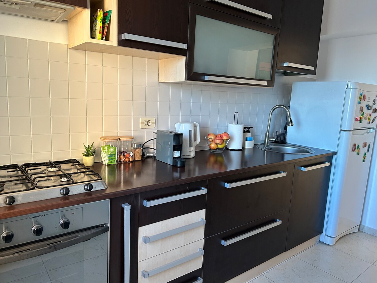 designed, fully renovated, and stylishly furnished in 2022, the apartment is situated on the 8th floor of the building on the main boulevard in the city center. Its prime location offers easy access to restaurants, cafes, shops, and cultural attractions. the apartment is just steps from the metro station, ensuring convenient transportation throughout the city. The spacious terrace provides a stunning panorama of the north-south axis, It’s the perfect spot to unwind with a glass of wine.