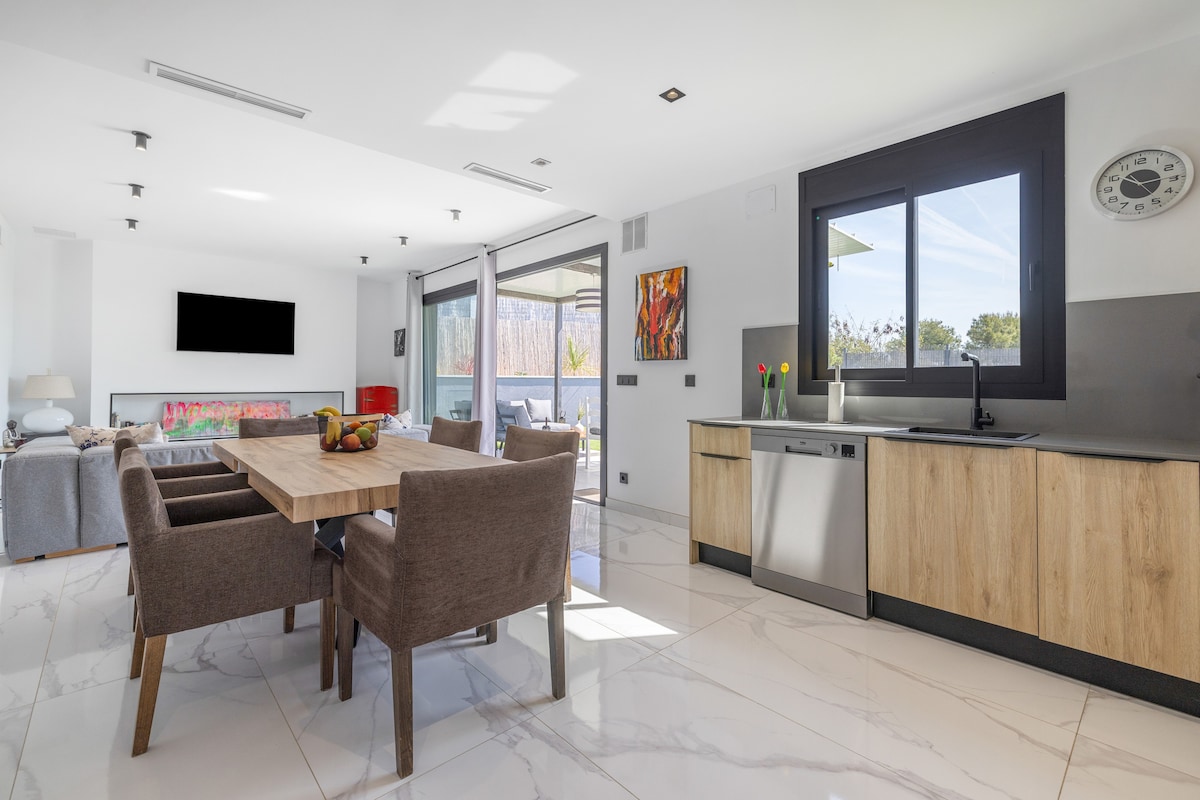 Villa exclusiva con piscina privada, jacuzzi climatizado, barbacoa y jardín de 500 m², a solo 3 min de la playa en coche y 15 minutos andando. Soleada todo el año. Pensada para disfrutar todo el año: sol, exterior y tranquilidad. Destaca su zona de bbq equipada y chill out, perfectas para largas comidas y noches al aire libre. Dispone de 4 dormitorios (3 Dobles y 1 Individual), 3 baños, salón amplio y cocina equipada. Ideal para familias, grupos o estancias largas enfocadas al buen tiempo.