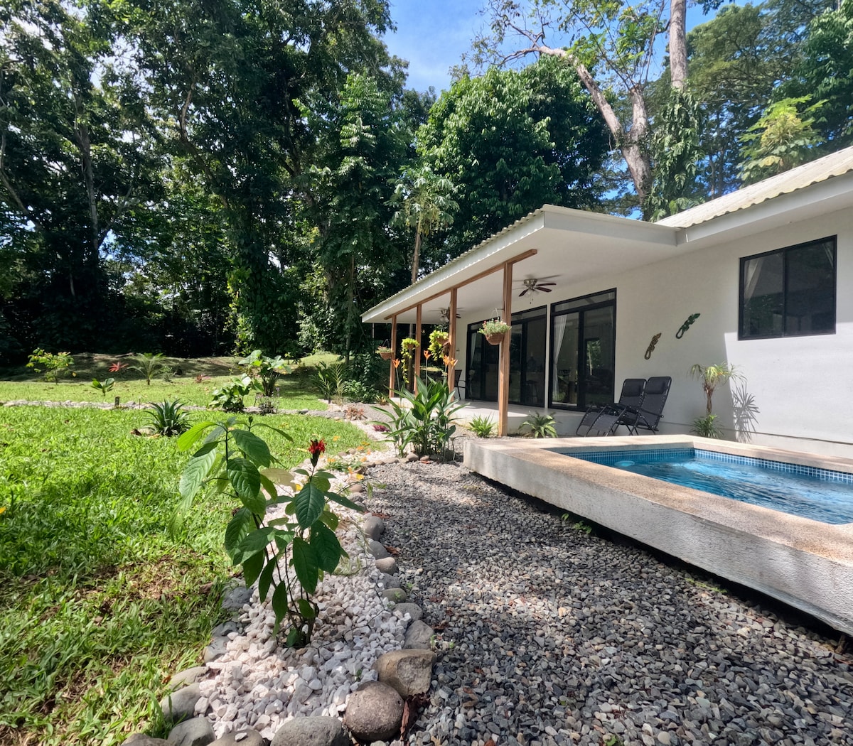 This purpose built Love Island themed casita is set in tropical gardens, minutes on foot from the National Park entrance, village center and some of Costa Rica's most beautiful beaches. This stand alone studio unit features A/C, its own private plunge pool, a dedicated work space and 25mb wifi speed for digital nomads, a fully equipped modern kitchen, stylish bathroom suite, and off road private parking. Watch sloths, toucans and howler monkeys while relaxing in your own luxurious dip pool!