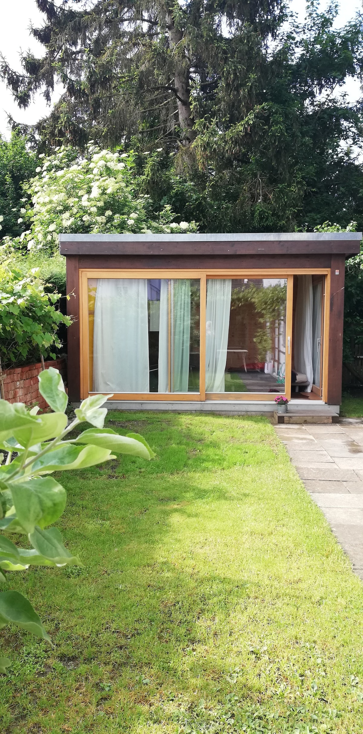 Una microcasa en el oeste de Múnich. Alquilamos una casa de jardín de unos 14 m² en nuestro jardín. Está equipado con un baño con inodoro y ducha, en la cocina hay una pequeña nevera, fregadero y placa de cocción. Se puede dormir en un sofá cama de unos 1,60 m de ancho. Se puede utilizar una parte del jardín común. Hay una parada de autobús a solo 50 metros. Con el S-Bahn se llega en unos 10 minutos al centro de la ciudad o en 20 minutos al lago Starnberg.