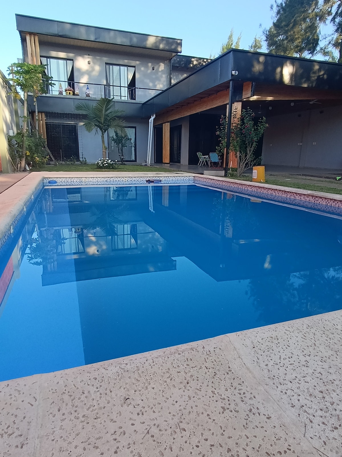 Casa ideal para parejas que buscan relajarse y pasar unos días tranquilos, contamos con piscina y estamos a sólo 4 minutos del río (7 cuadras). La habitación cuenta con aire acondicionado. La cocina está completa y cuenta con horno eléctrico, además del asador integrado a la casa. También contamos con tv con acceso a direct tv mediante el pago los días que necesites usar, dos bicicletas para que uses en tu estadía y un Kayak con elementos de seguridad. Contamos con equipo para playa.