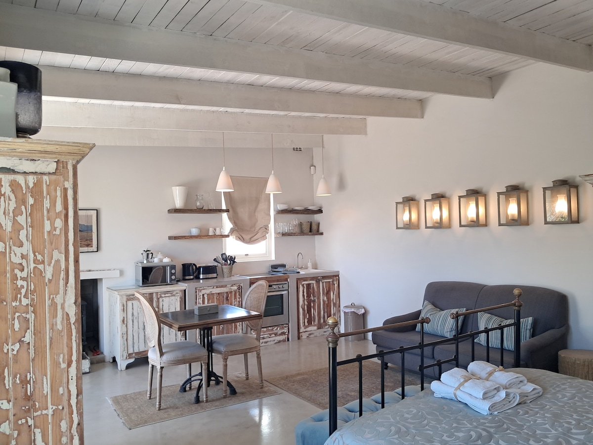 Ofrece una amplia sala de estar con chimenea y una cocina moderna de planta abierta con una pieza central de la isla de cocina. El dormitorio tiene una cama tamaño queen extra larga y el baño, una gran ducha que se abre a un pintoresco patio. El loft de arriba tiene una zona de trabajo y un sofá cama. Amplio patio con comedor y ducha exterior. Barbacoa y cochera. A solo 5 minutos a pie de la playa de Paternoster. No se admiten niños menores de 12 años.