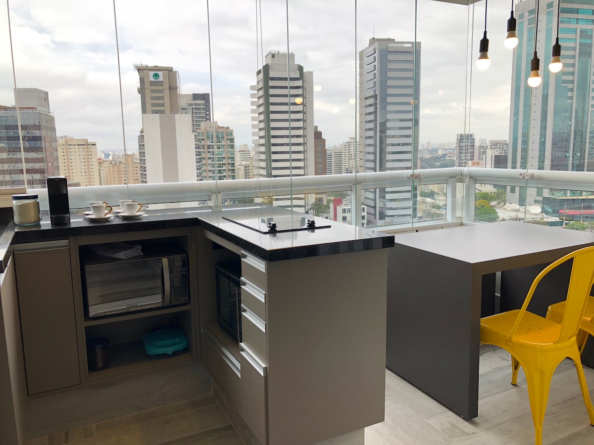 ¡Apartamento cómodo y hermosa vista cerca de la Av Paulista!