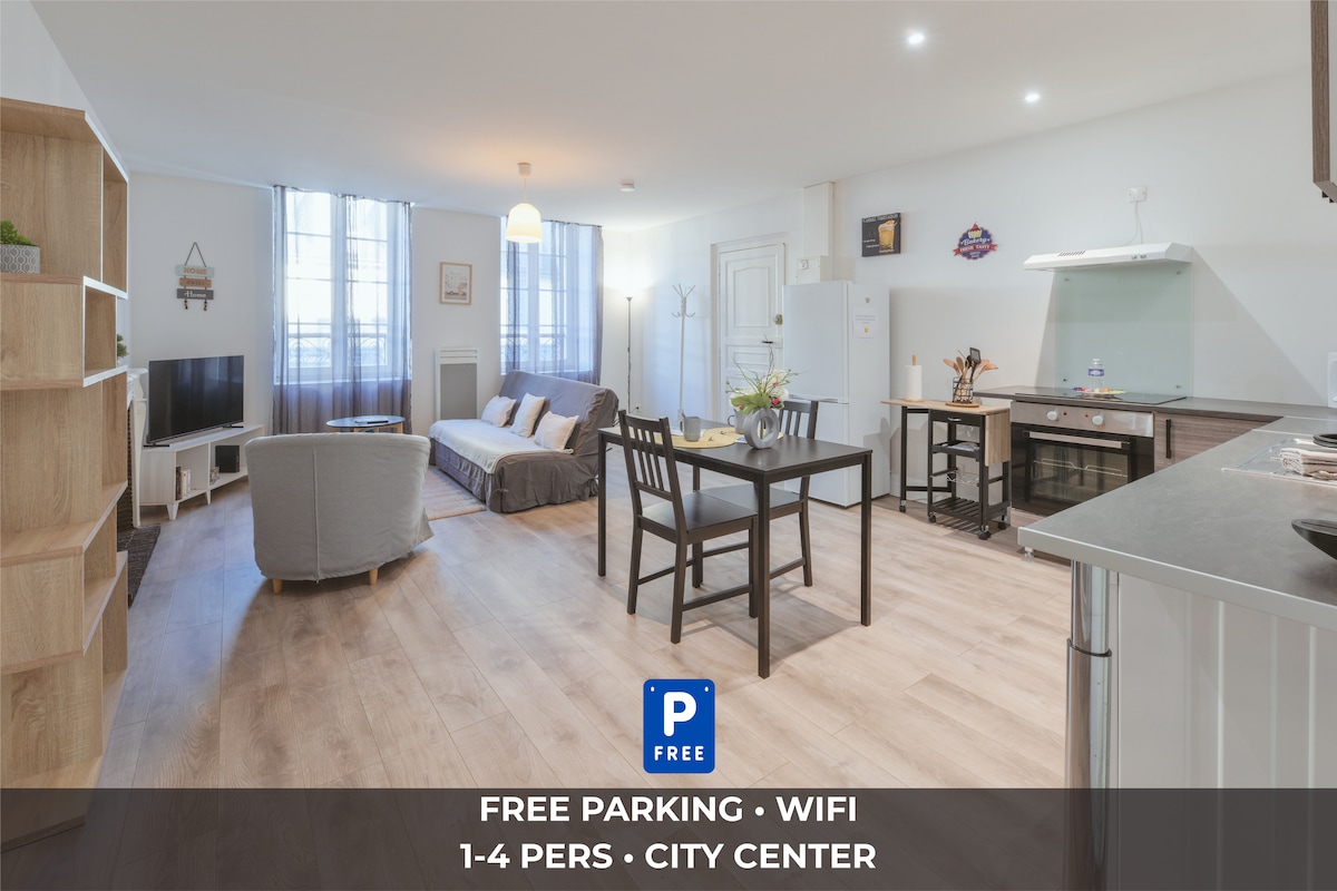 ✨ T2 spacieux, rénové & lumineux au cœur de Pau 🚗 Parking privé souterrain inclus (entrées/sorties illimitées) 🔑 Arrivée autonome, propreté impeccable 🚶♀️ Tout à pied : Clémenceau 5 min, Bosquet 2 min 🛋️ Salon cosy avec canapé‑lit confortable 🛏️ Chambre calme et literie soignée 🍽️ Cuisine équipée pour séjours courts & longs 💻 Fibre + vrai bureau idéal télétravail Parfait couples, pros & familles (4 pers)
