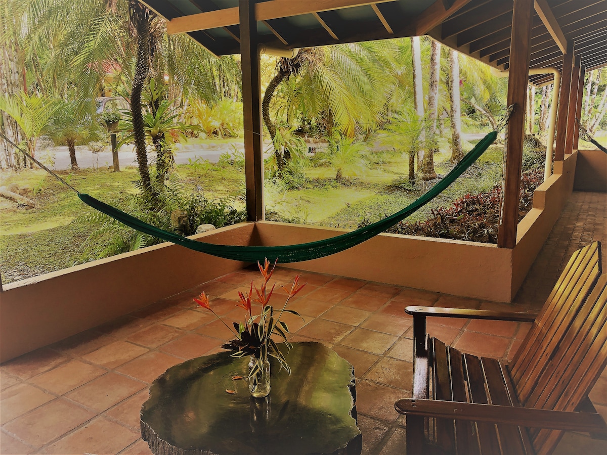 Located amongst the trees with your very own screened porch- where you can enjoy the outdoors, without the bugs enjoying you! The studio casita is fully equipped with a kitchen, instant hot water, comfy bed and the option of AC or fresh air with great design and cross ventilation. A shared saltwater pool & BBQ area are a rare treat. Conveniently located on a paved road- Gaby's restaurant across the street, a supermarket & pharmacy 300 meters away. The beach is a short walk. A++ gardens