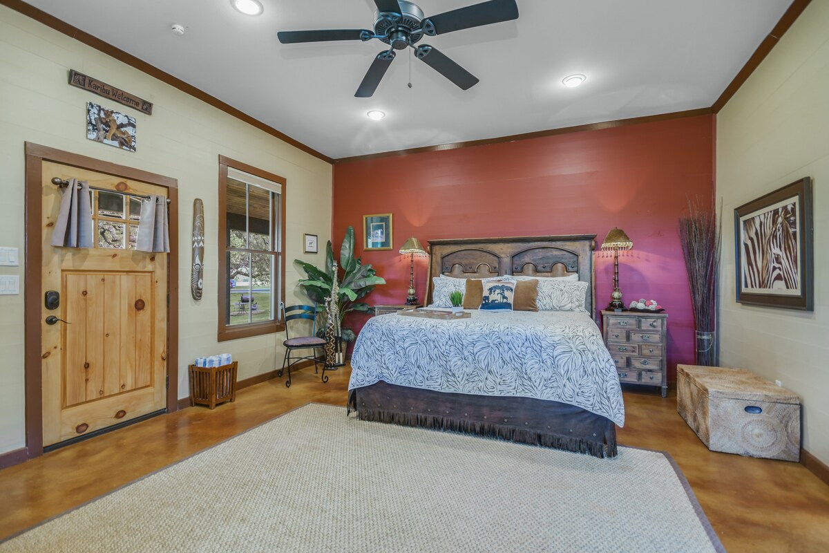 ¡A media milla a pie de Main St.! Bluebonnet Hideaway Suite es muy cómoda y aislada. La suite es un dormitorio espacioso recién remodelado con techo abovedado, vigas rústicas en el techo y mucha luz natural. El baño actualizado incluye una gran ducha de vidrio y un vestidor. La barra de café bien surtida tiene una mininevera, cafetera Keurig y microondas. En el exterior hay una terraza privada con jacuzzi. Aparcamiento en el lugar. La suite es completamente privada, con su propia entrada privada.