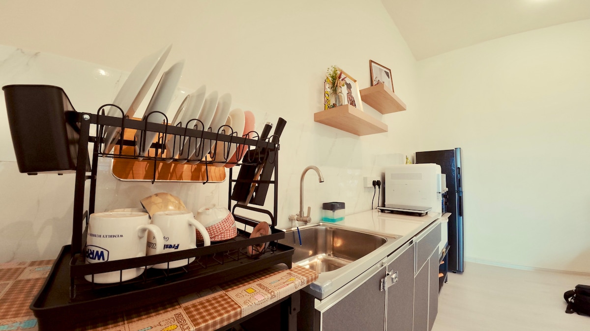 It's small but cozy. Spacious yet filling. Perfect for couples or family to unload your luggage and worries. Enjoy the wide ocean scenery at the beach on the ground floor. Bury your feet at the beach. Enjoy grilling food beside the residential pool. The residence is located near town. Visitors can drive into town within 5 minutes or enjoy *ikan bakar* and tom yam near by.