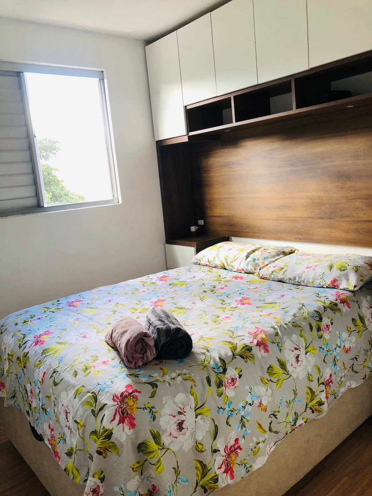 Apartamento completo en condominio cerrado con portería 24h con cámaras de seguridad y plaza de aparcamiento. Cuenta con piso porcelánico en todas las habitaciones del apartamento, Internet 15 mega con wifi, lavadora Brastemp 11 kg, horno eléctrico, microondas, TV por cable con 60 canales (NET), aire acondicionado en la sala, TV de 32 pulgadas. Además, se encuentra a unos 400 metros de farmacias, supermercados y parada de autobús. El apartamento está en el 4º piso y NO TIENE ascensor.